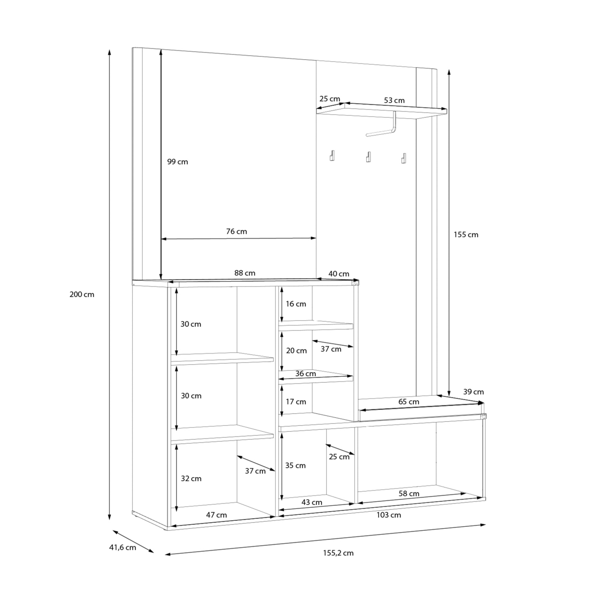 🏡 Előszobába kabátok, táskák, cipők rendszerezésére