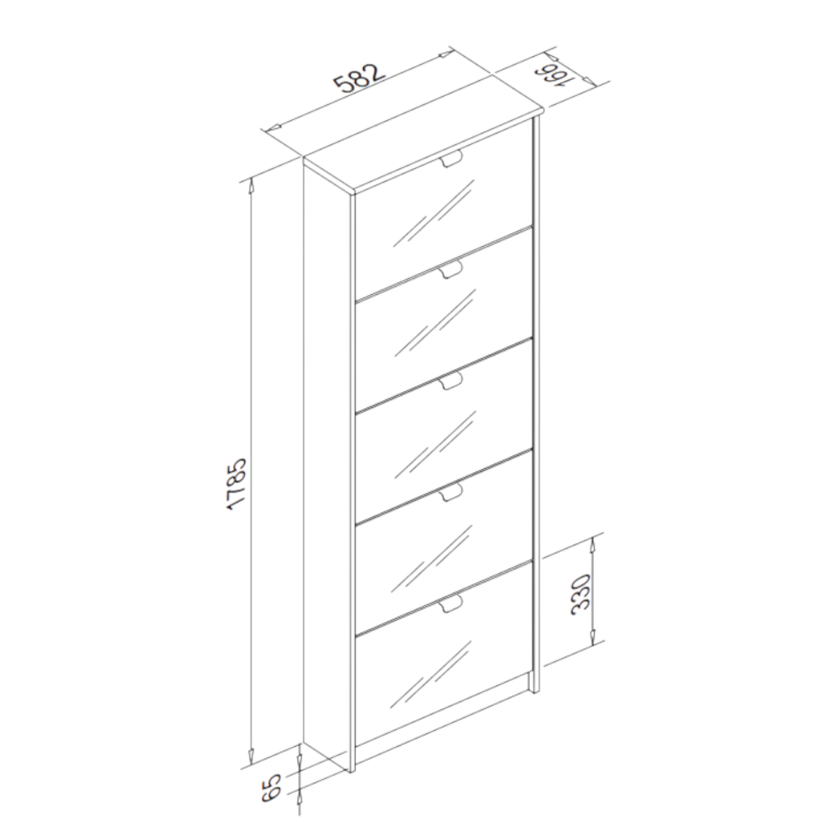Koblenz cipősszekrény 58x178,5x17cm fehér tükrös