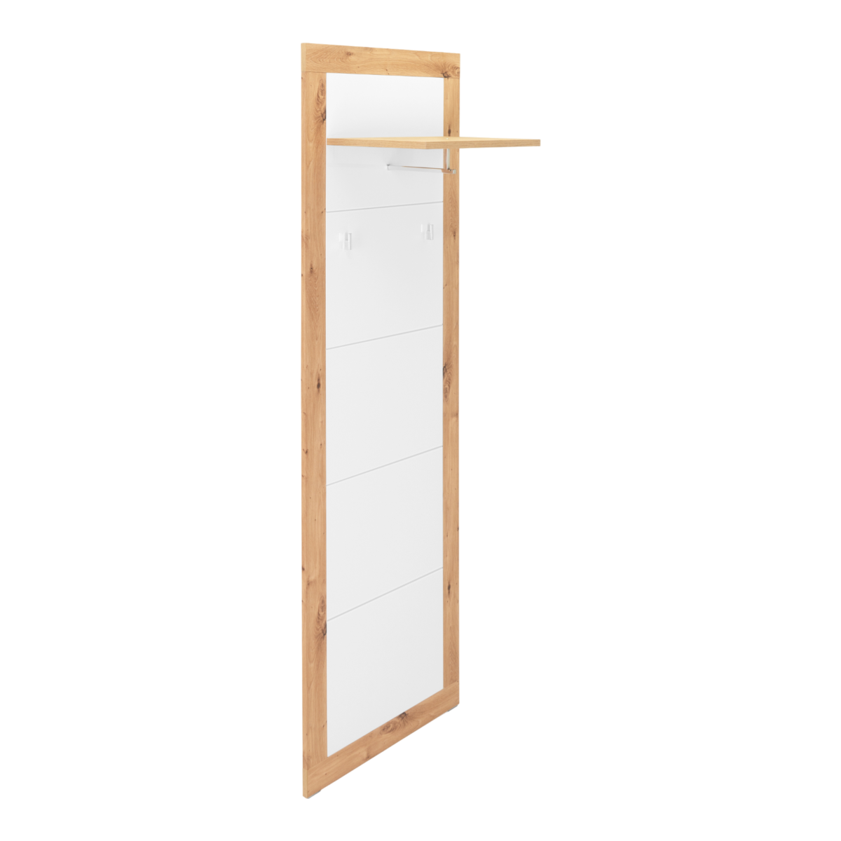 A panel felső kalaptartóval, 2 fém kabátakasztóval és egy ruhaakasztó rúddal van felszerelve, így egyszerre biztosít helyet kabátok, sálak, táskák és kalapok számára.