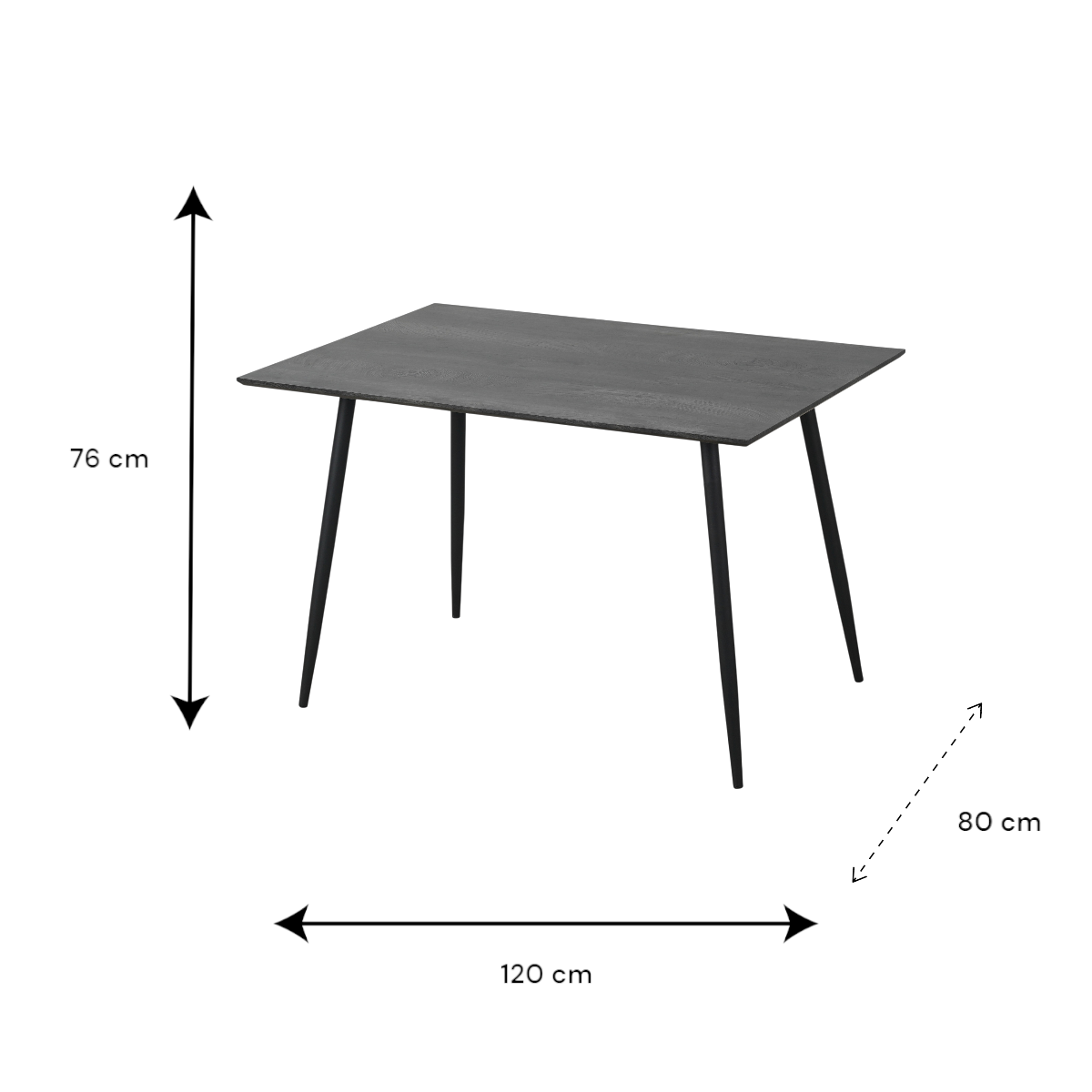 MDF-ből, fémből készült, fekete színű étkezőasztal 120x80x76 cm méretben.