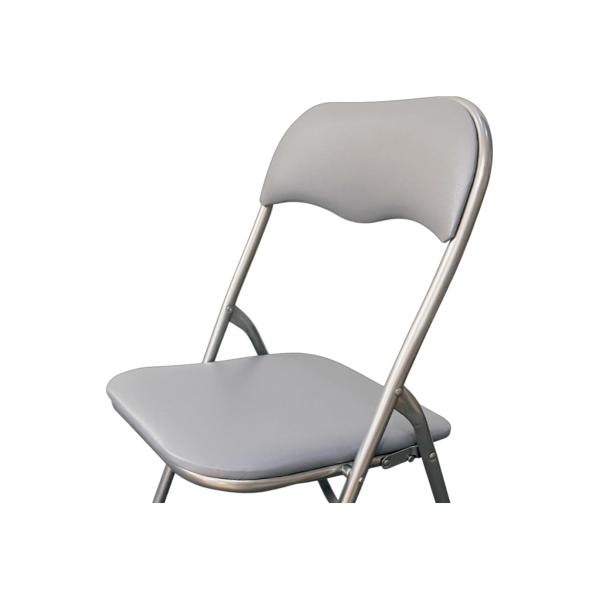 Összecsukható szék PVC-üléssel, szürke, ezüst színben.