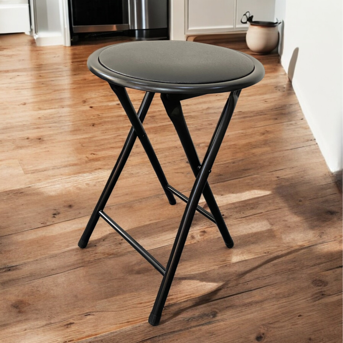 Összecsukható ülőke PVC borítással. Váz csövének mérete: 19 x 0,8 mm.