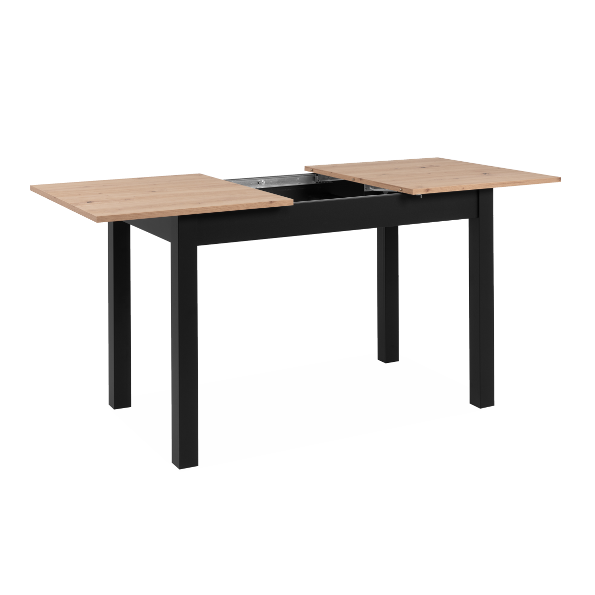 Fekete színű asztallap Artisan tölgy színű bővítő elemmel