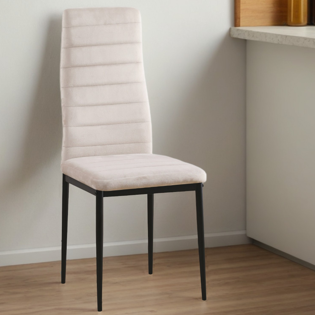 A Line étkezőszék letisztult formavilágával és visszafogott bézs színével könnyen beilleszthető különböző lakberendezési stílusokba. A kárpitozott ülőfelület és háttámla kényelmes ülést biztosít, míg a fekete lábak modern kontrasztot adnak a szék megjelenésének.