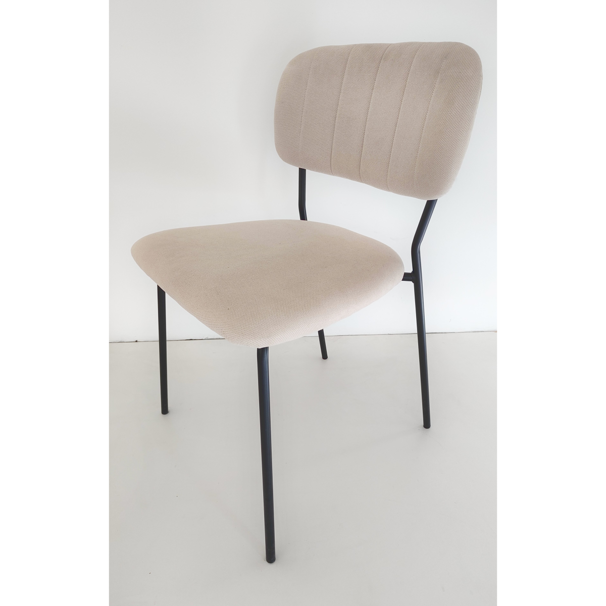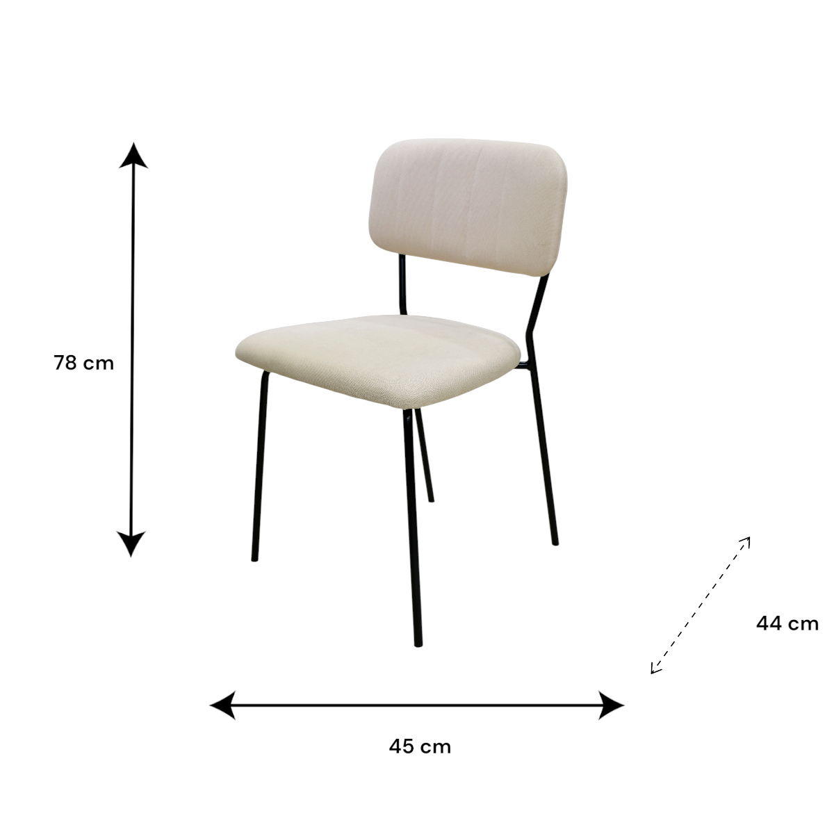 A Nina étkezőszék (78x45x44 cm, bézs) modern és elegáns megjelenésével stílusos kiegészítője lehet bármely étkezőnek vagy konyhának. A fekete fém váz stabilitást biztosít, míg a bézs színű, textil kárpitozású ülőfelület és háttámla kényelmes és barátságos használatot nyújt.