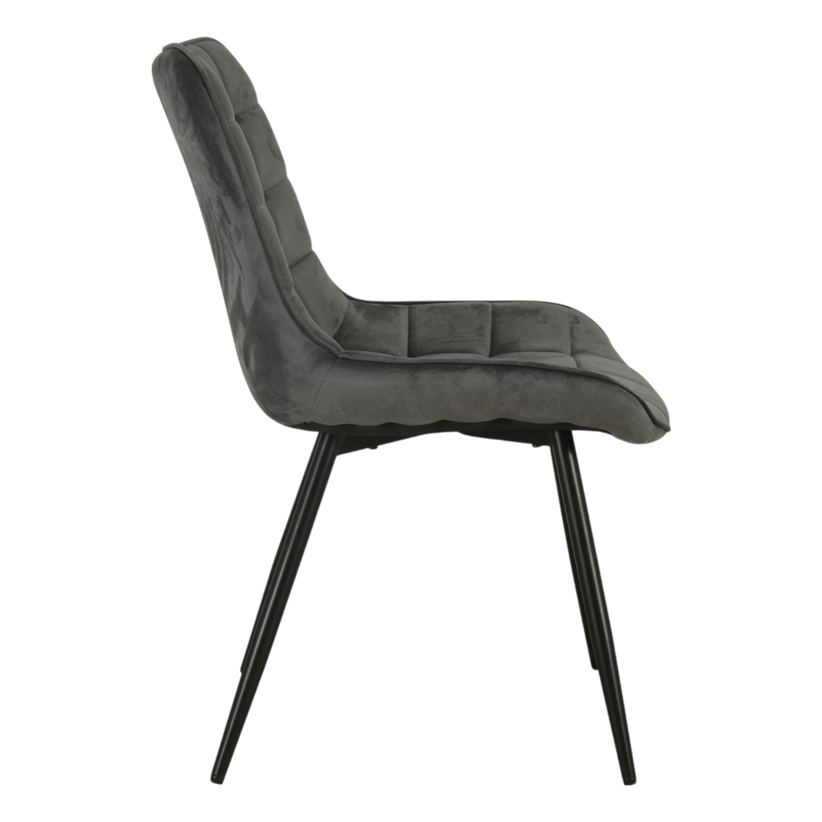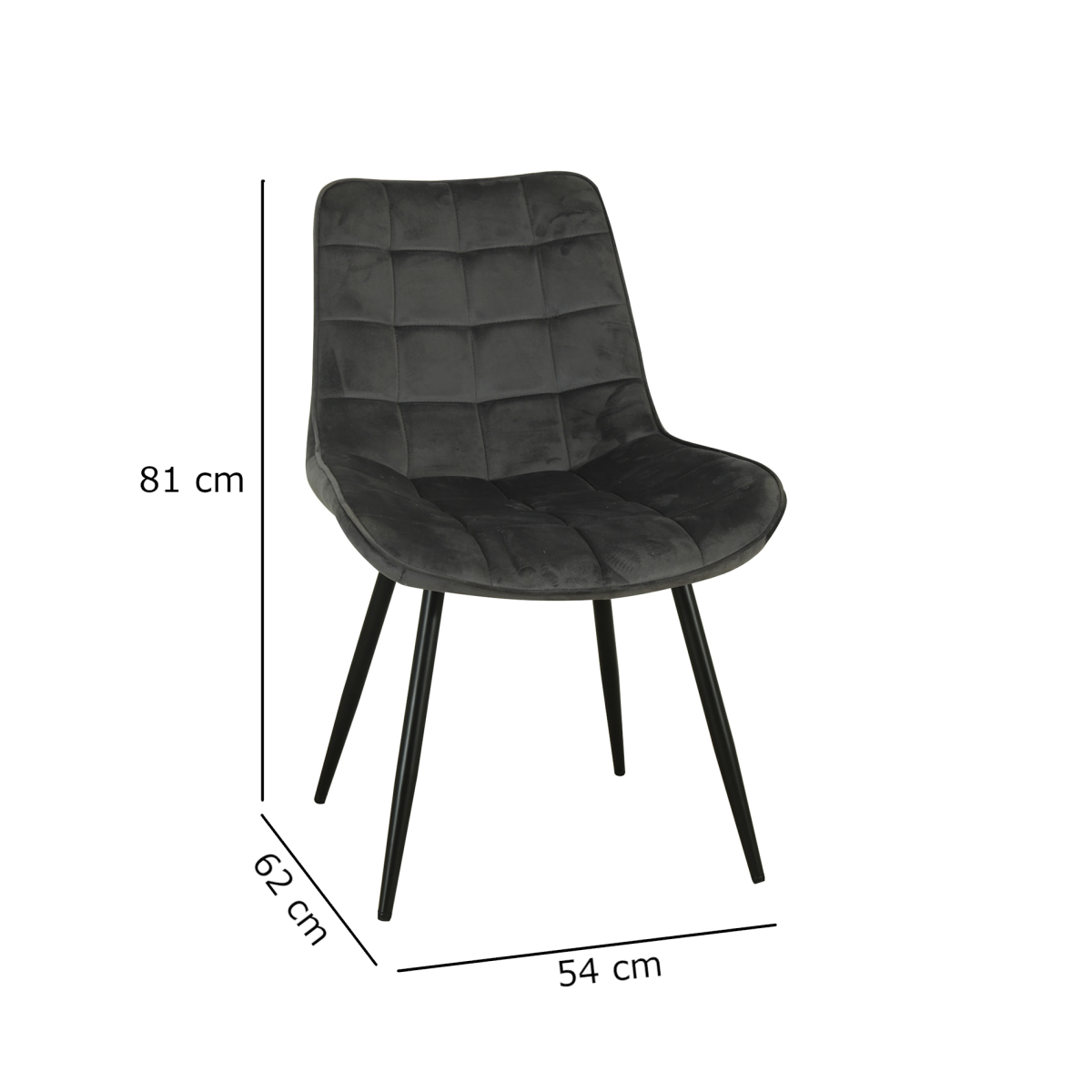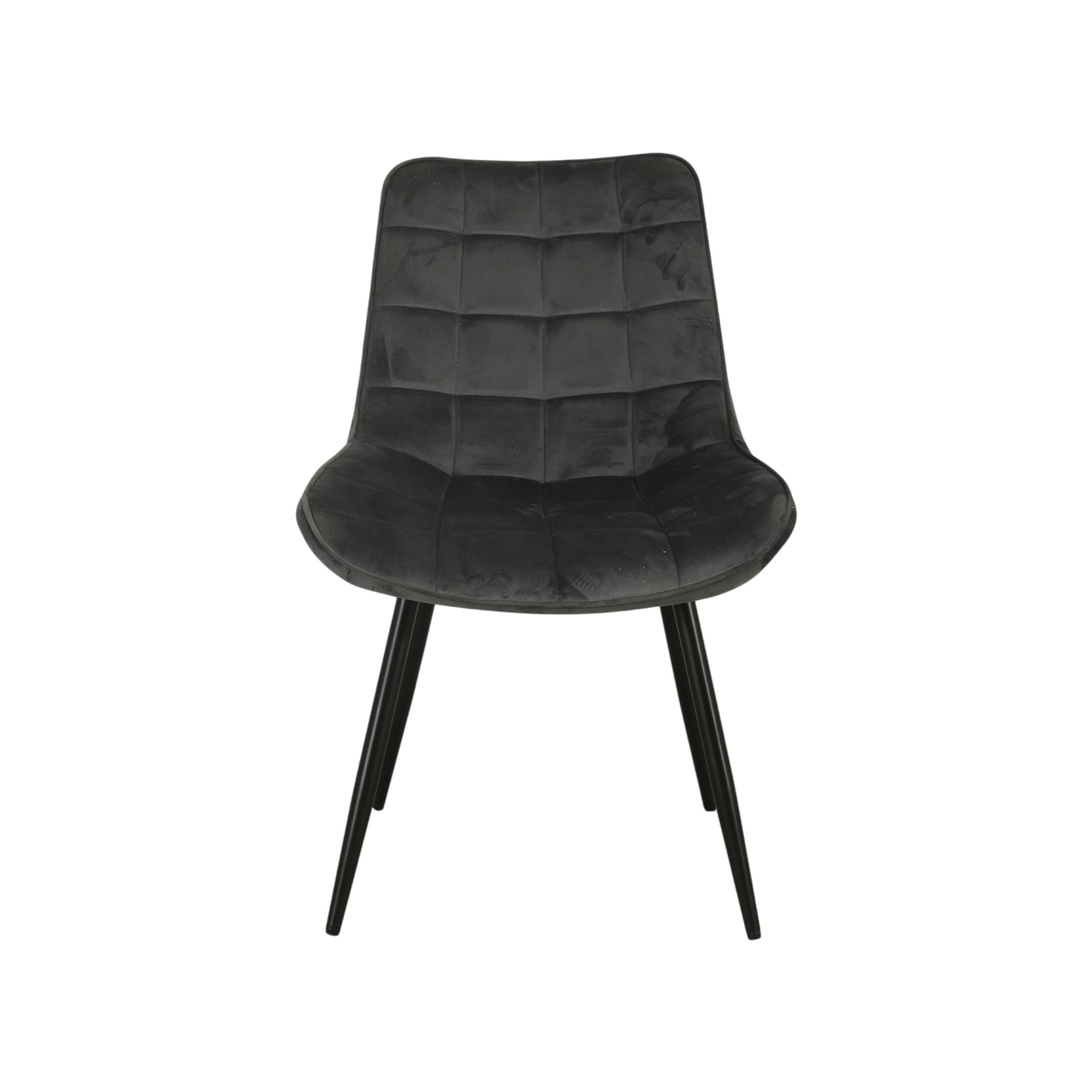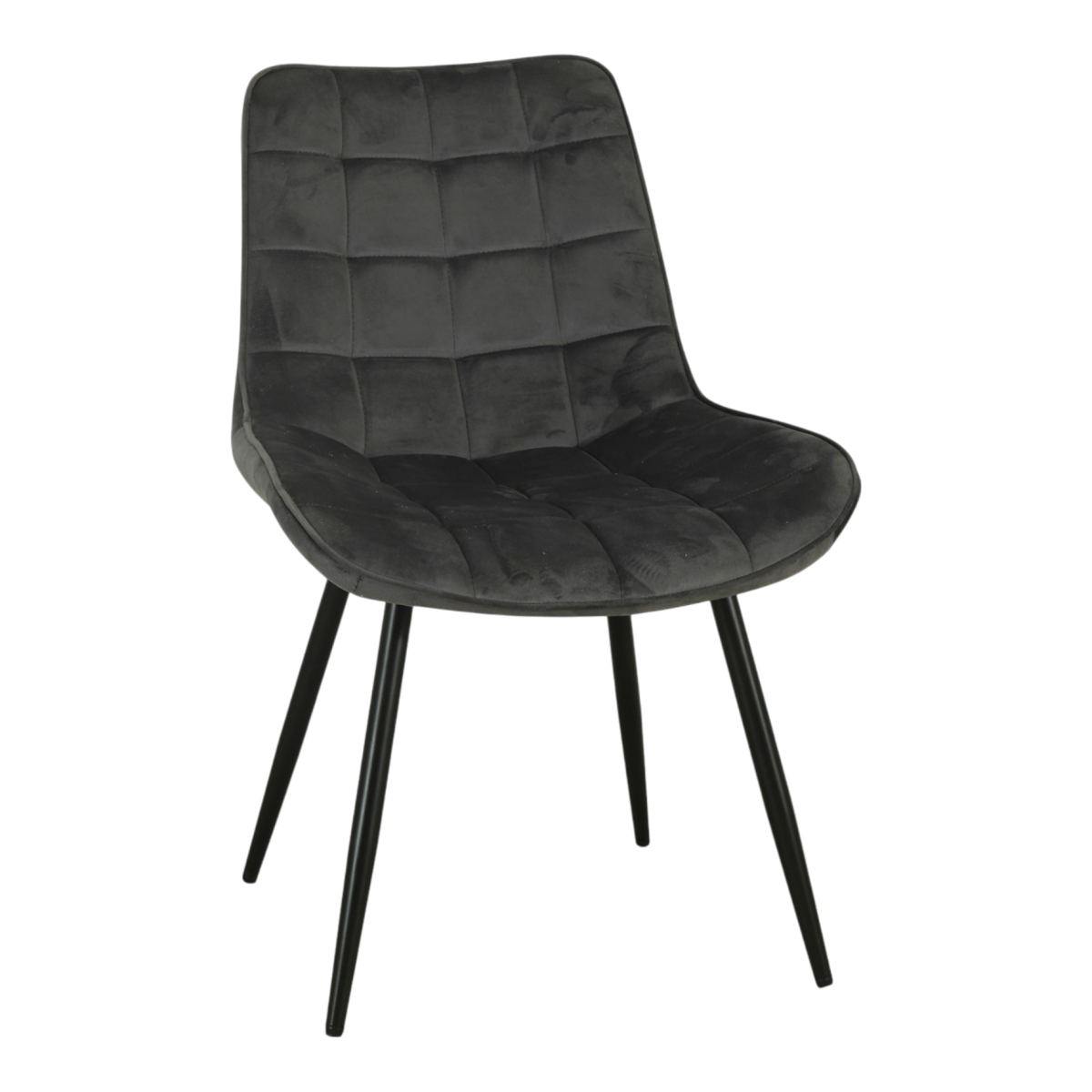 Ez a modern étkezőszék stílusos szürke bársony kárpitozással és fekete fém lábakkal készül, így kiválóan illeszkedik letisztult, skandináv vagy kortárs enteriőrökbe is. A 54×62×81 cm-es méret kényelmes ülést biztosít, a 120 kg-os teherbírás pedig stabil használatot garantál.
