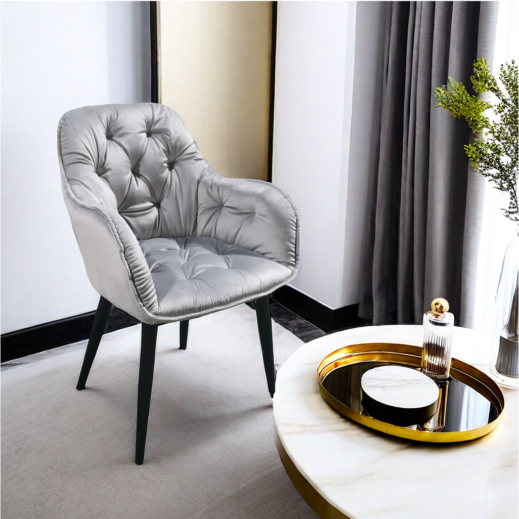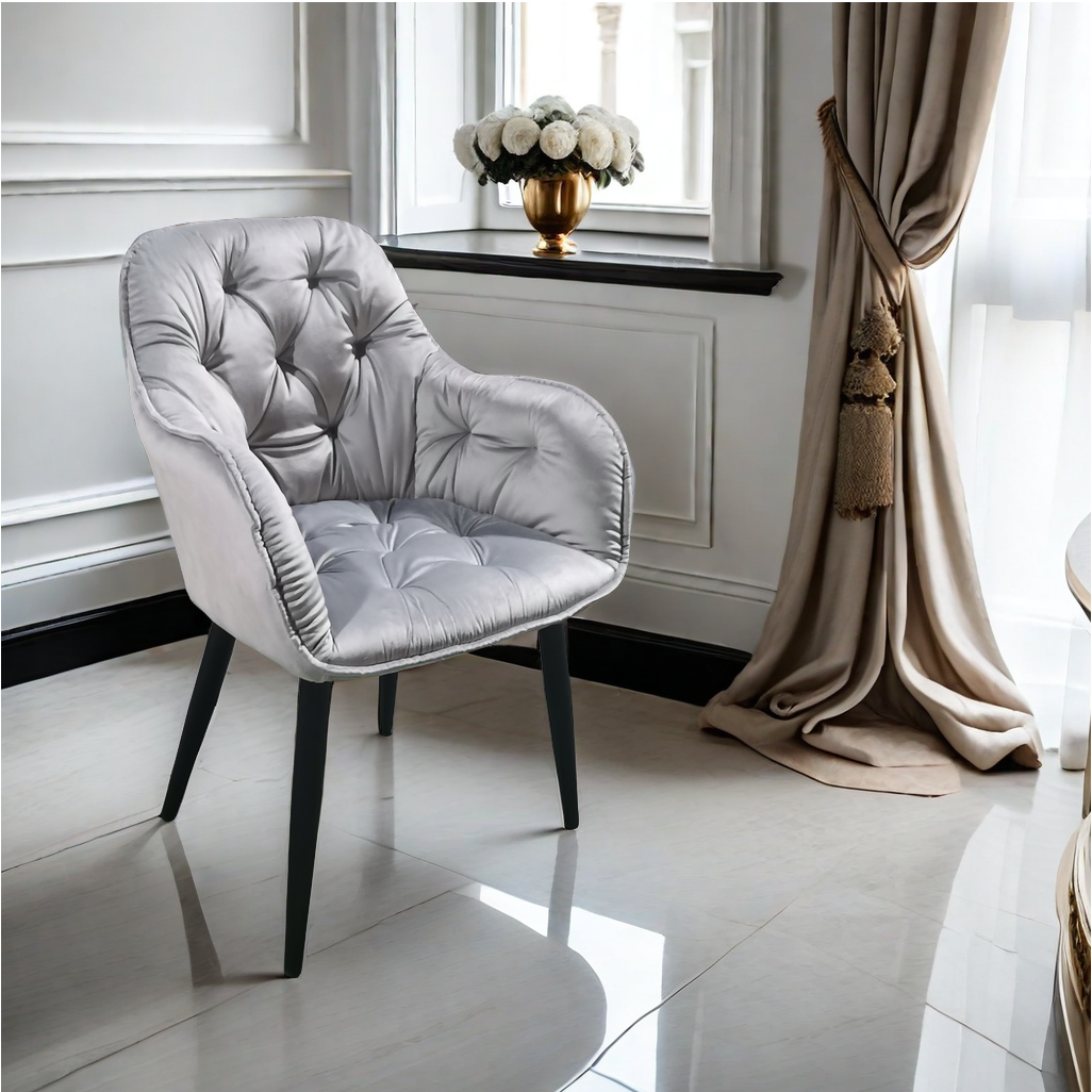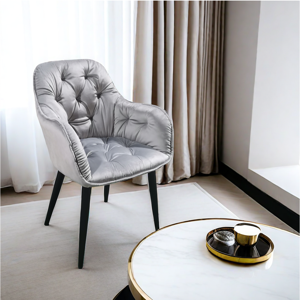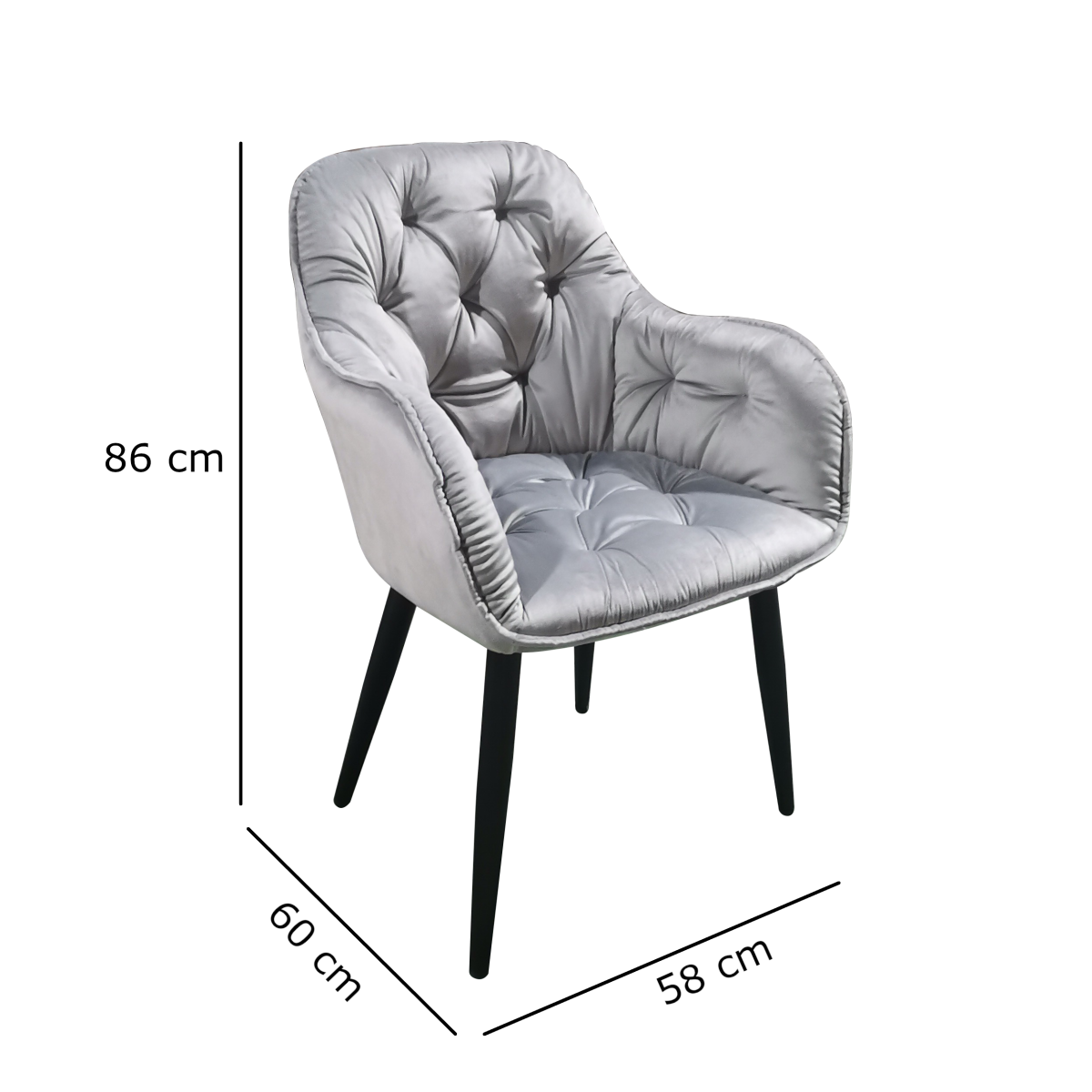 A szürke bársony étkezőszék modern és letisztult megjelenésével jól illeszkedik különféle étkező- és nappali enteriőrökbe. Bársony kárpitozása kényelmes ülést biztosít, míg a porfestett vaslábak stabilabb tartást adnak. A 86×58×60 cm-es méret kompakt és praktikus választás otthoni használatra.