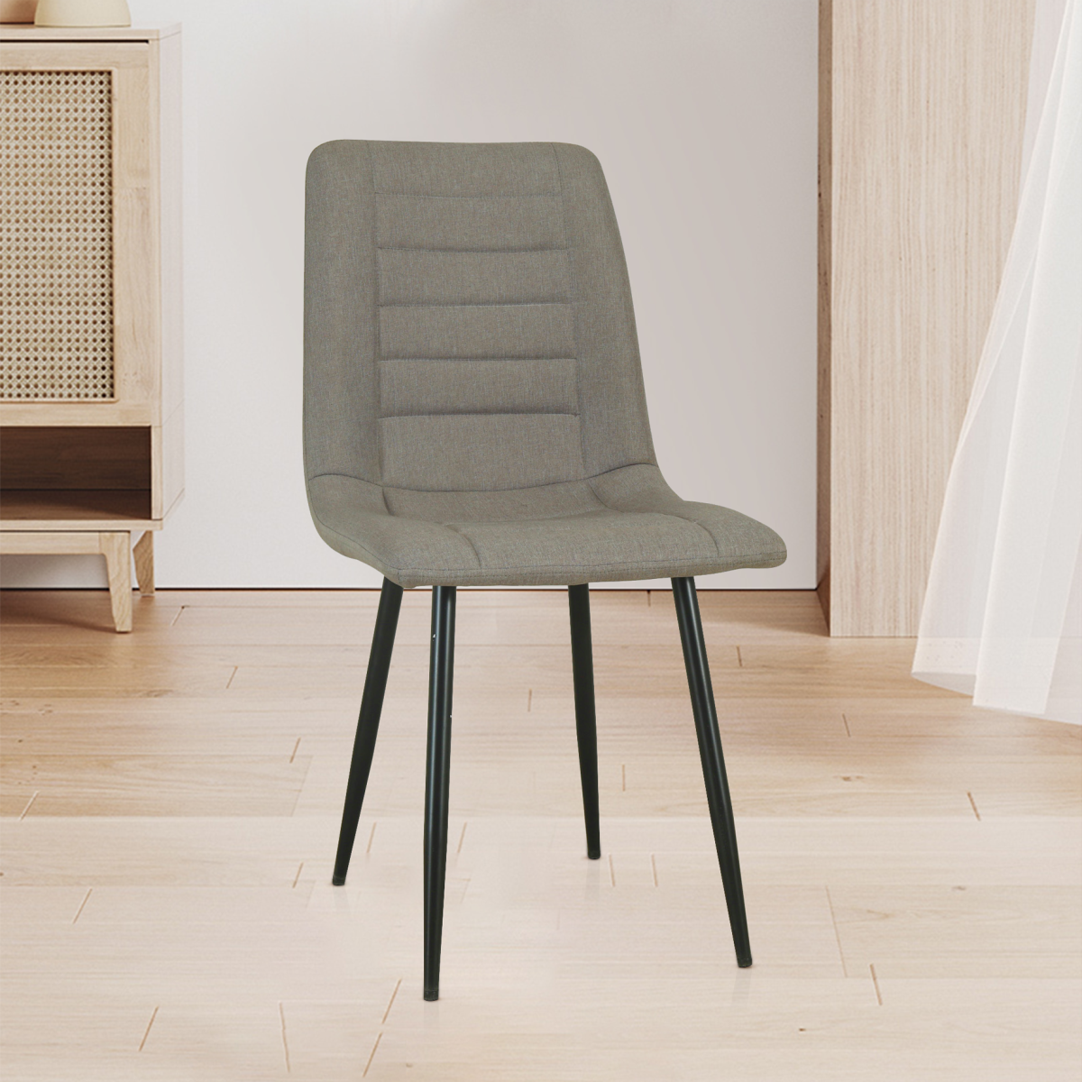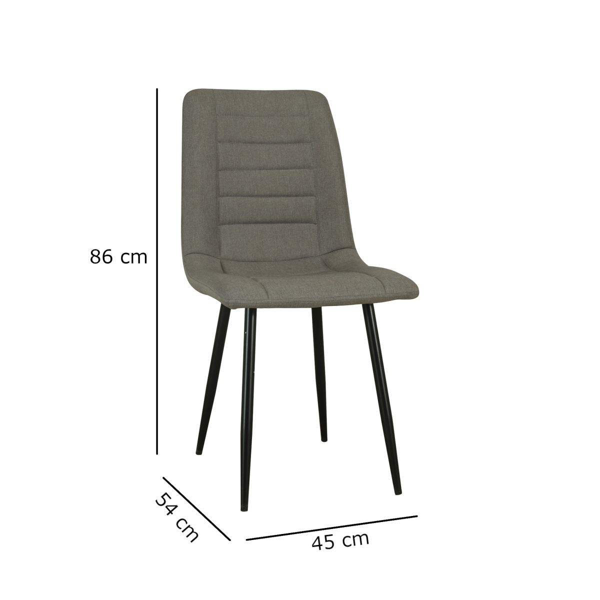 Ez a szövet kárpitozású étkezőszék ideális választás mindennapi használatra. A kompakt, 45×54×86 cm-es méretének köszönhetően kisebb helyiségekben is jól elfér. A porfestett vaslábak stabilabb tartást biztosítanak, a szövet bevonat pedig kényelmes ülőfelületet nyújt.