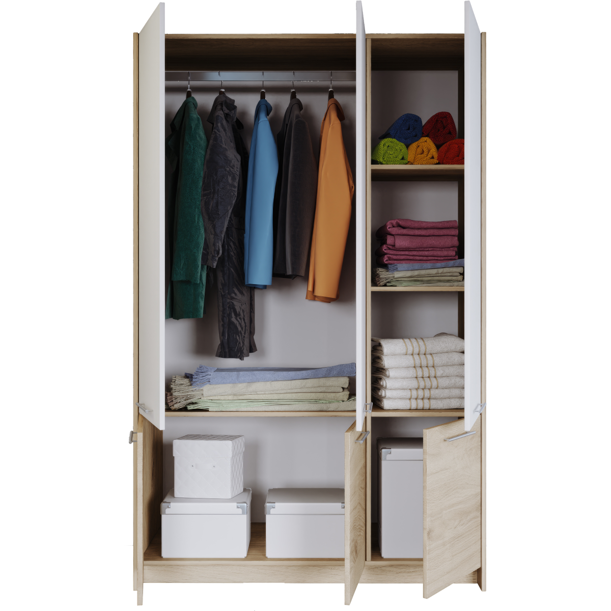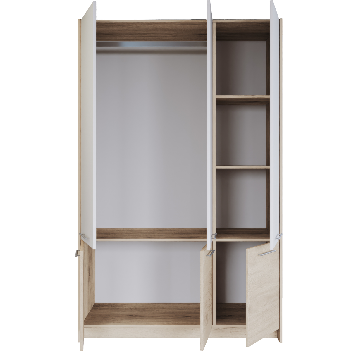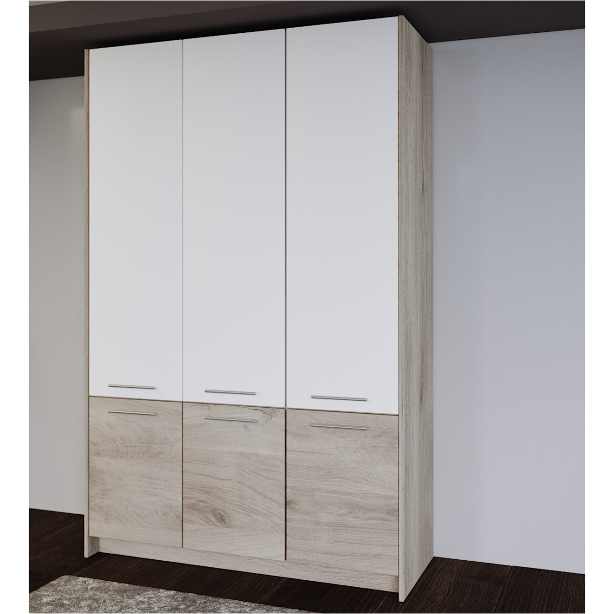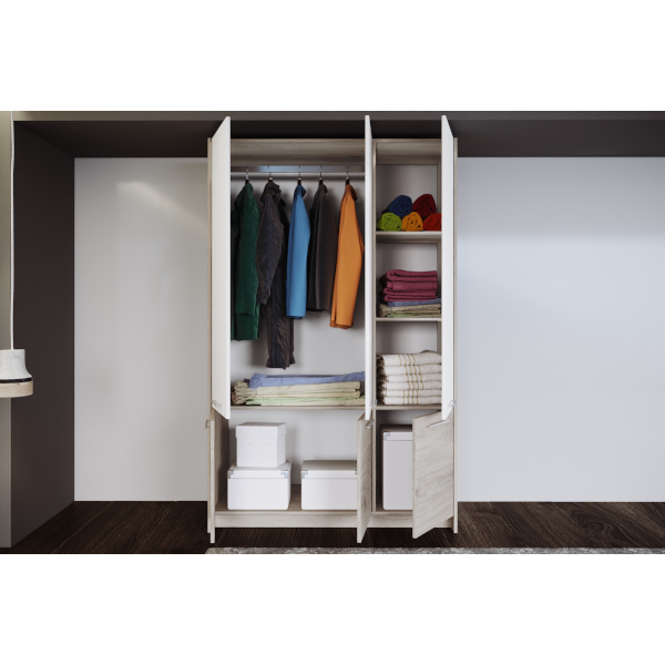 Budapest 150x190x51cm sonoma arwen/fehér 6 ajtó nyitóajtós gardróbszekrény