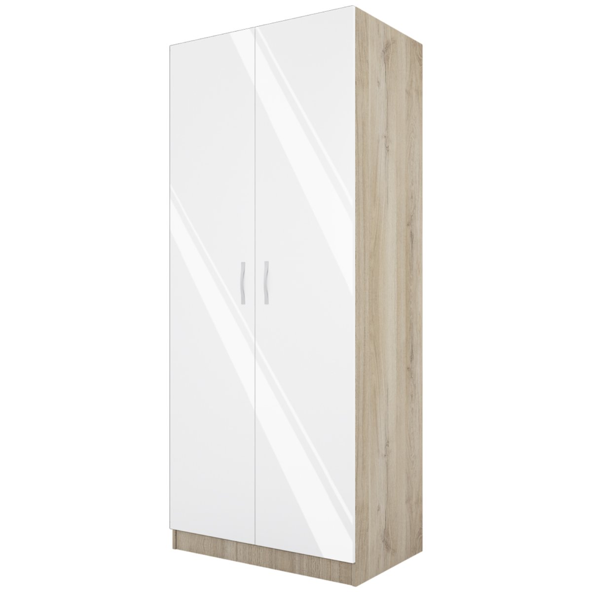 A City 1007 gardróbszekrény letisztult, modern megjelenésével praktikus választás hálóba, előszobába vagy vendégszobába. A sonoma tölgy és a magasfényű fehér kombinációja könnyen illeszthető a legtöbb enteriőrbe. Két nyitható ajtóval, belső akasztós résszel és öt polccal érkezik, így változatos tárolási igényt is kényelmesen kiszolgál.