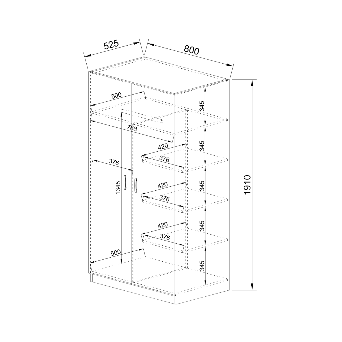 Méret: 80×52,5×191 cm