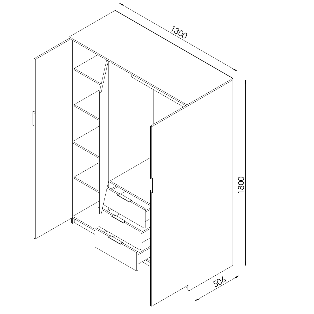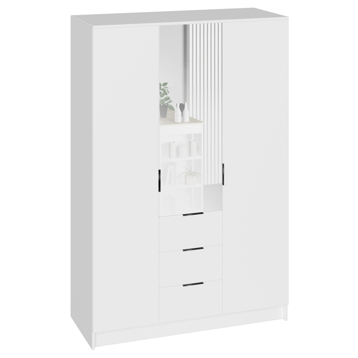 Lambda 130x180x50,6cm fehér 3 ajtó/3 fiók tükrös gardróbszekrény