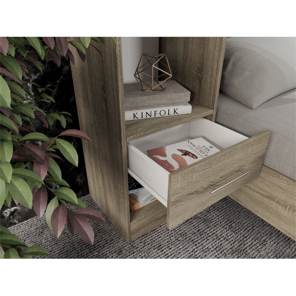 A Nexia hálószoba garnitúra azoknak készült, akik modern, egységes és praktikus megoldást keresnek teljes hálószoba berendezésére – külön elemek összeválogatása nélkül. A letisztult formavilág, természetes hatású sonoma tölgy szín, valamint az átgondolt tárolási lehetőségek minden igényt kielégítenek.