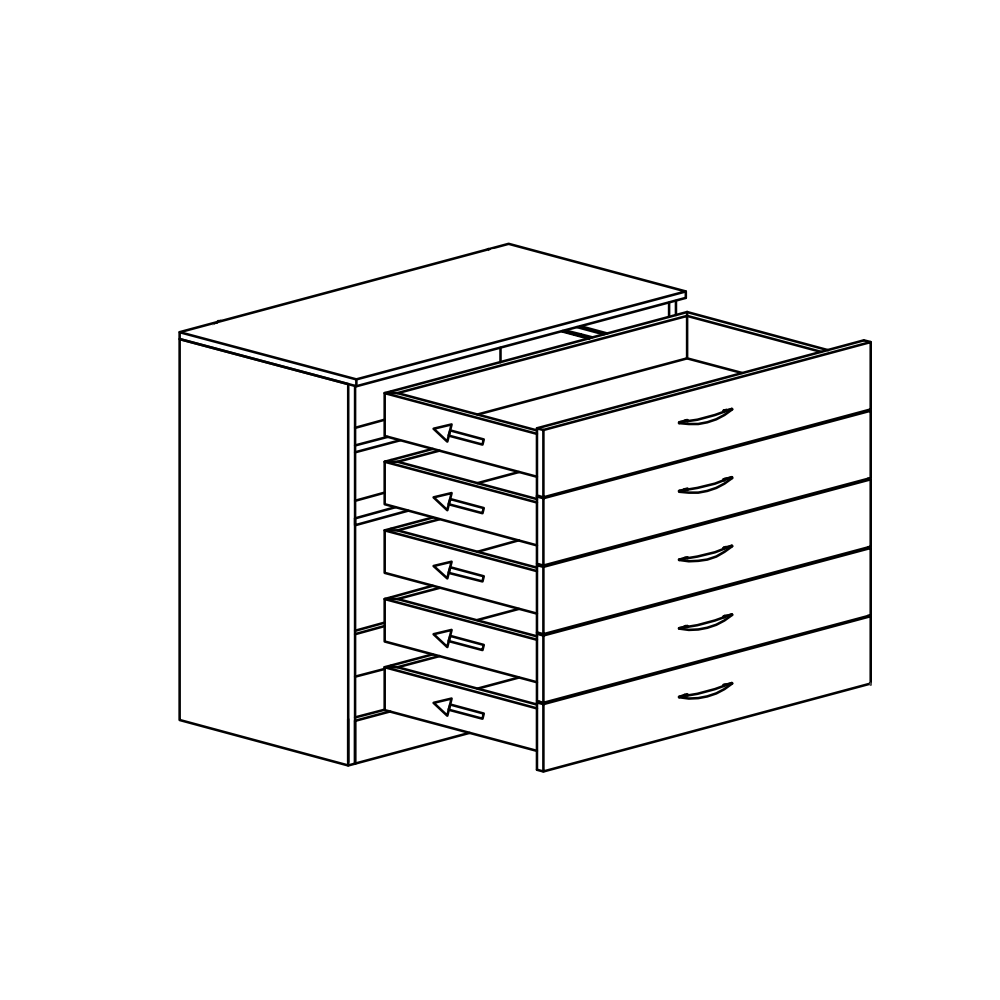 ✅ Ötfiókos kialakítás – ideális ruhák, dokumentumok, textíliák rendszerezésére