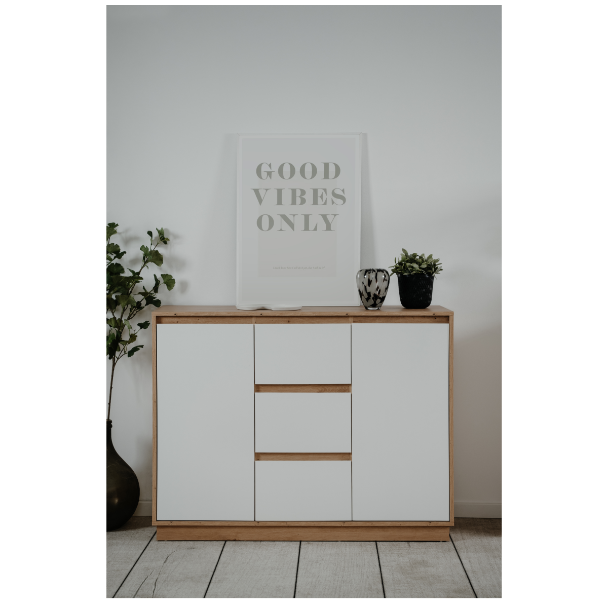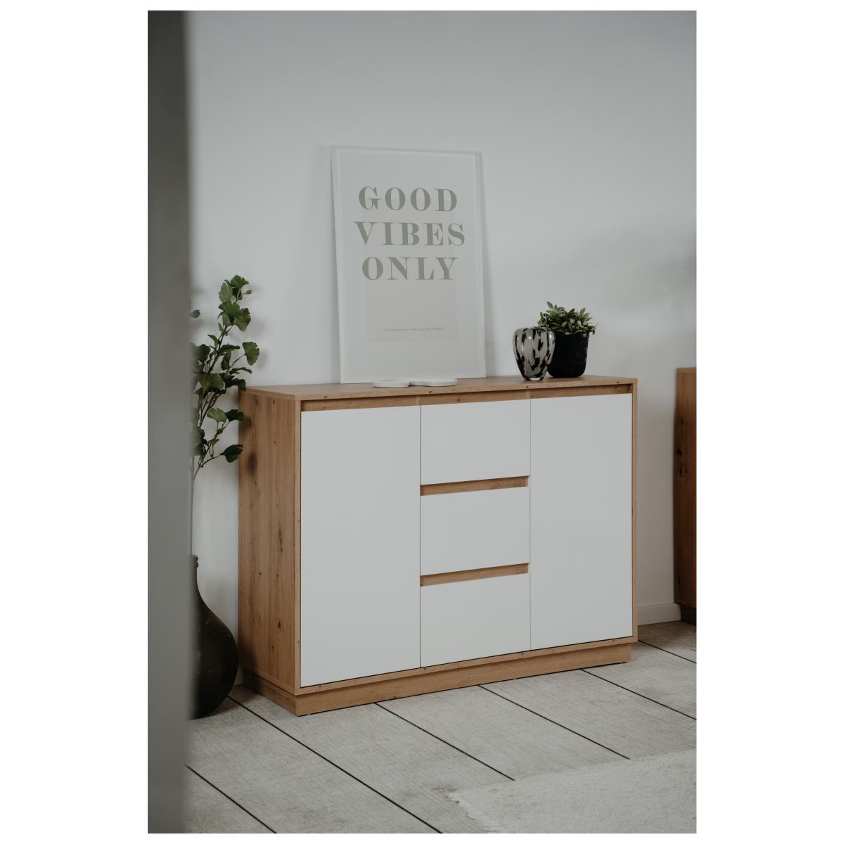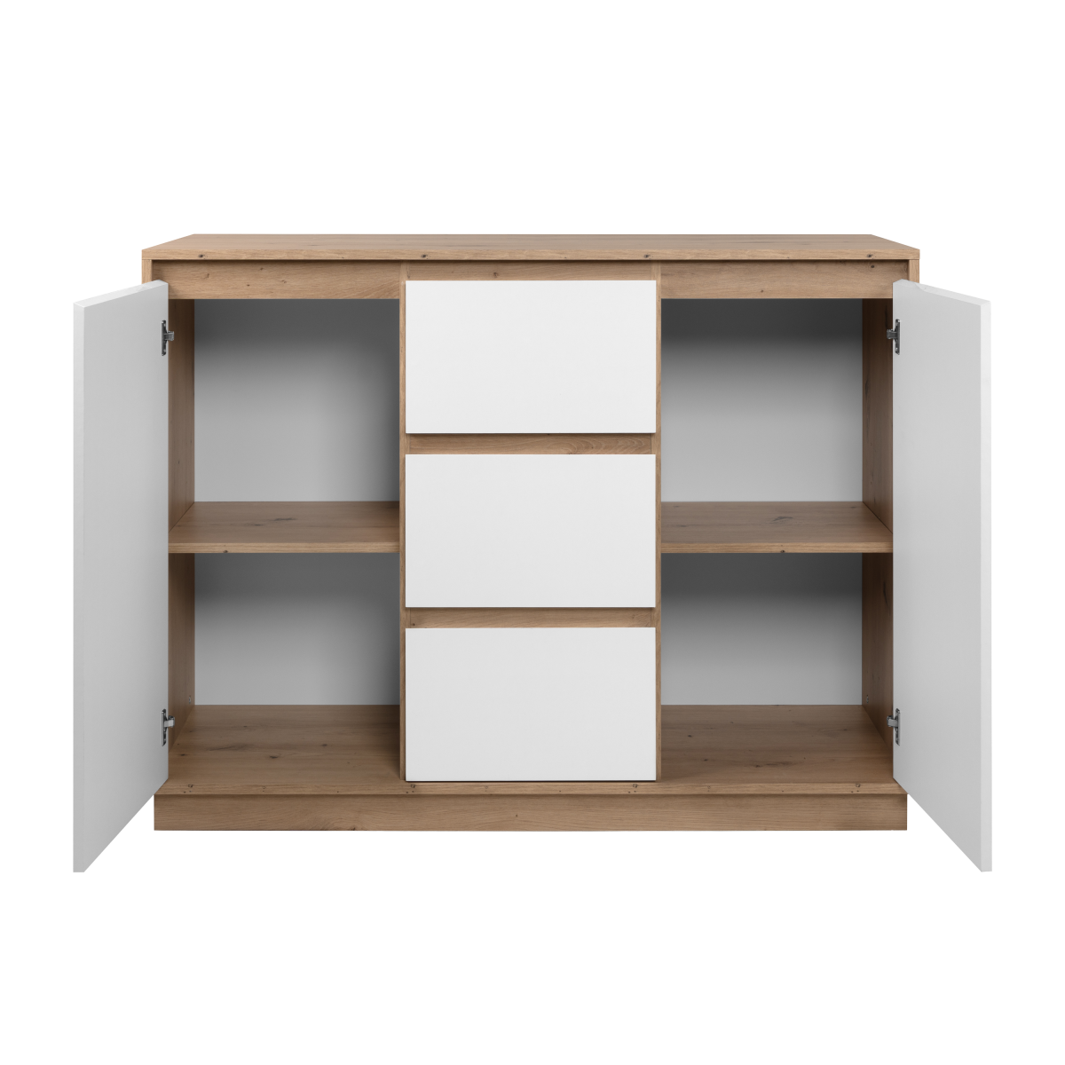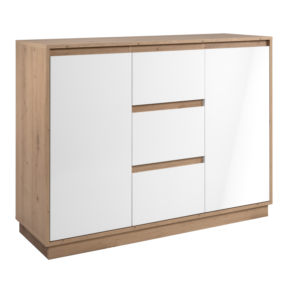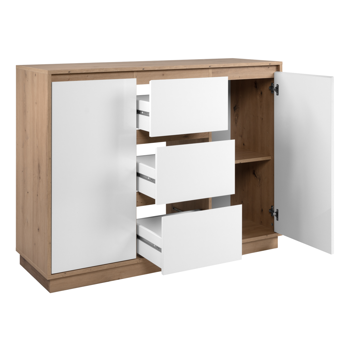 Phoenix 01B komód 2 ajtós 3 fiókos artisan tölgy-fehér fényes 117x88x40cm