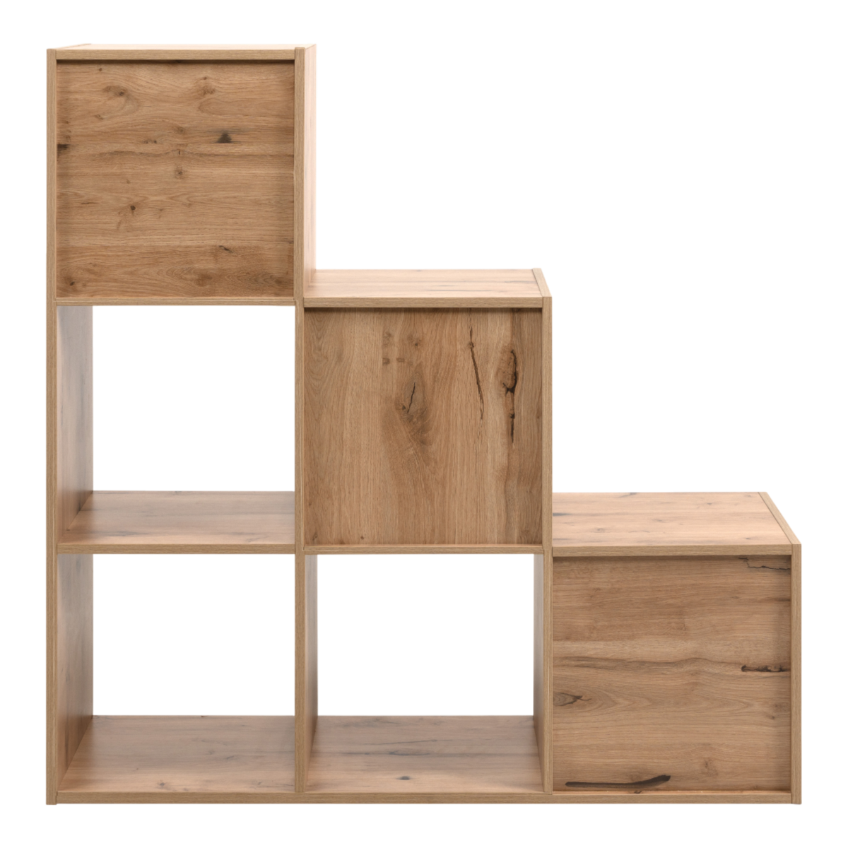 Az Arvika 24A lépcsős polc egyszerre praktikus tárolóbútor és stílusos térelválasztó. Az artisan tölgy–bézs színvilág természetes, barátságos hangulatot teremt, a lépcsőzetes kialakítás pedig modern megjelenést kölcsönöz bármely helyiségnek. A 89×89×28 cm-es méret ideális kisebb és közepes terekbe, ahol fontos a rendezett, mégis esztétikus elrendezés.