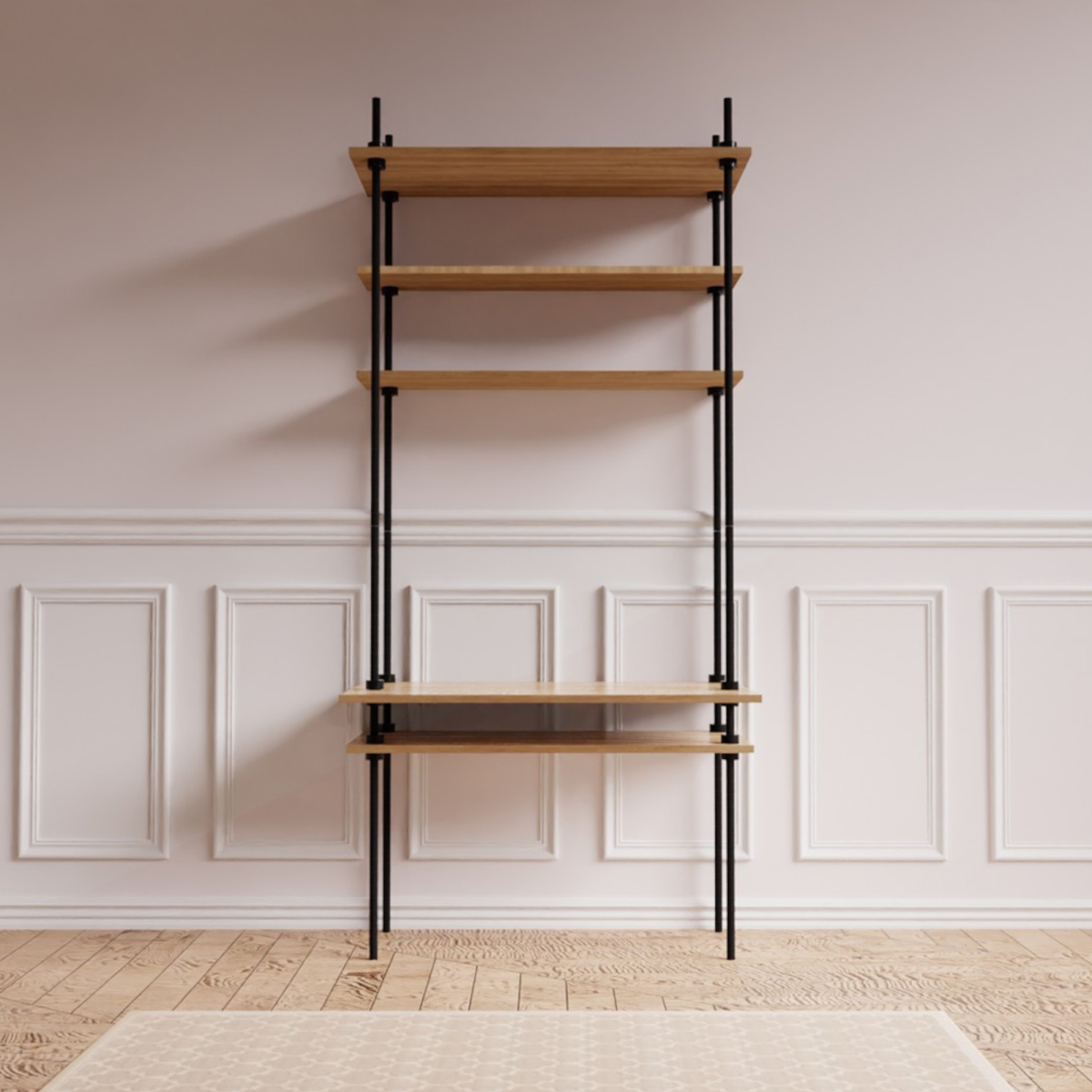 Moduláris felépítésű, több helyiségben jól működő polcrendszer, amely ideális nappaliba, dolgozószobába, hálóba vagy akár előszobába. Nyitott polcai egyszerre alkalmasak tárolásra és dekorációs elemek kihelyezésére. Stabil szerkezete miatt akár könyvespolcként vagy kisebb lakásban ruhatároló egységként is funkcionálhat.