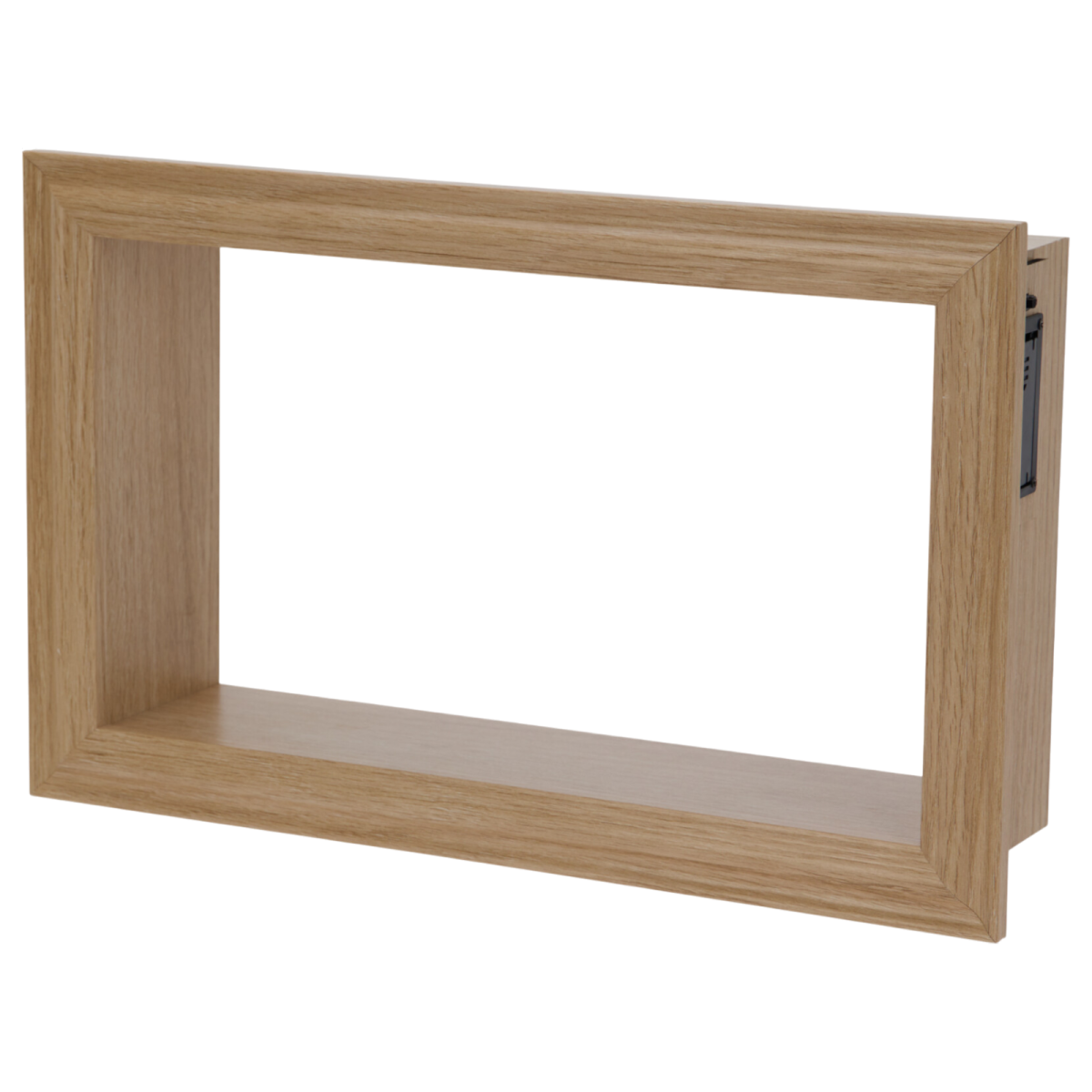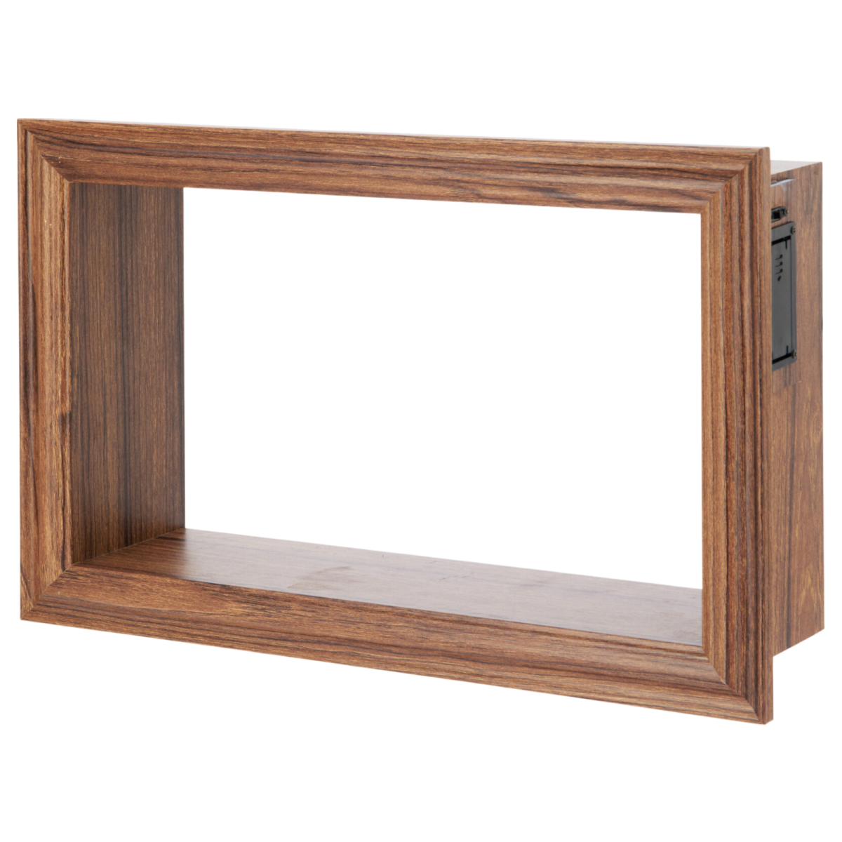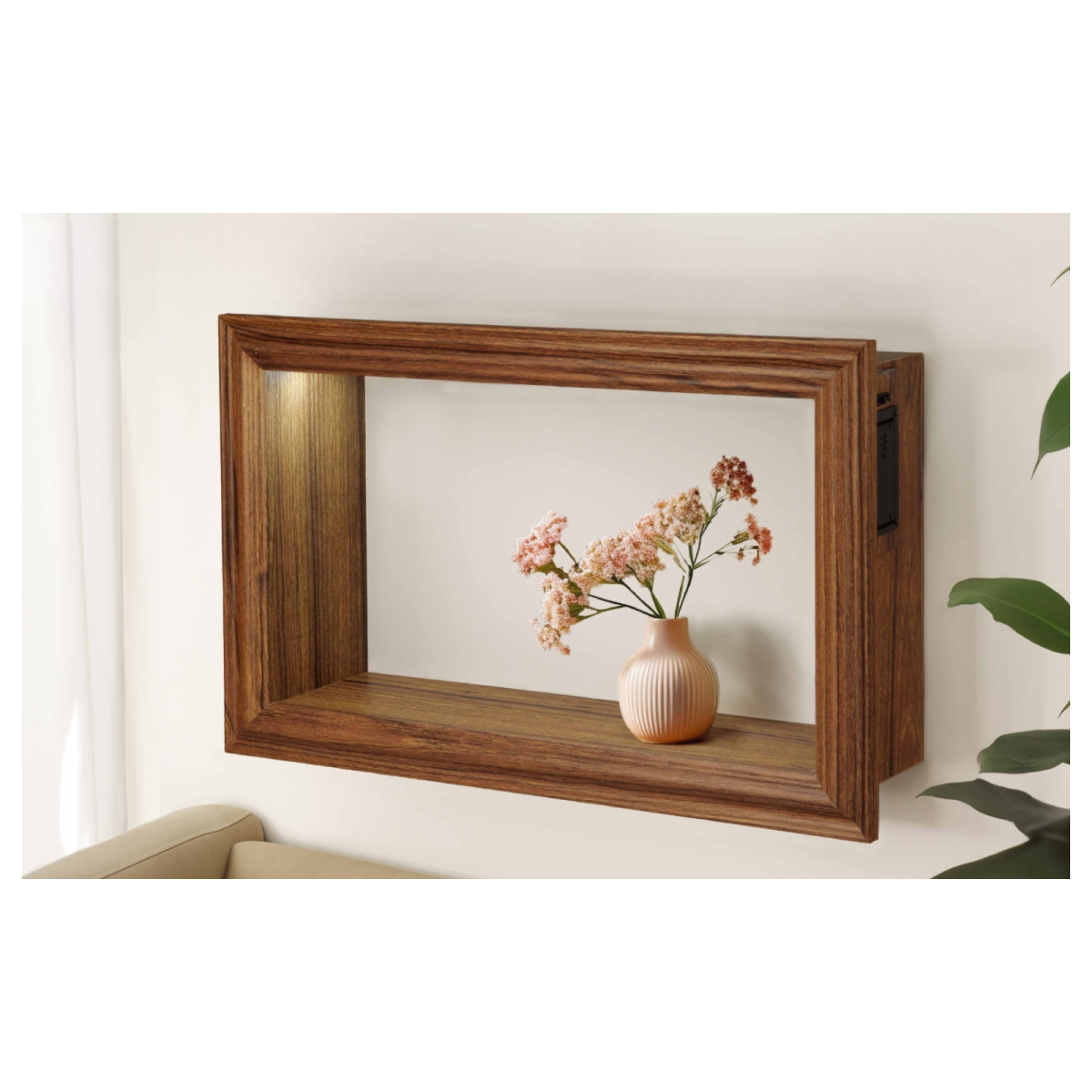 Fából készült, természetes hatású felületkezeléssel, amely kétféle árnyalatban – sötét vagy világos fa – választható. A 25 cm x 40 cm x 10 cm méretű polc ideális kisebb dísztárgyak, fényképek vagy növények elhelyezésére.
