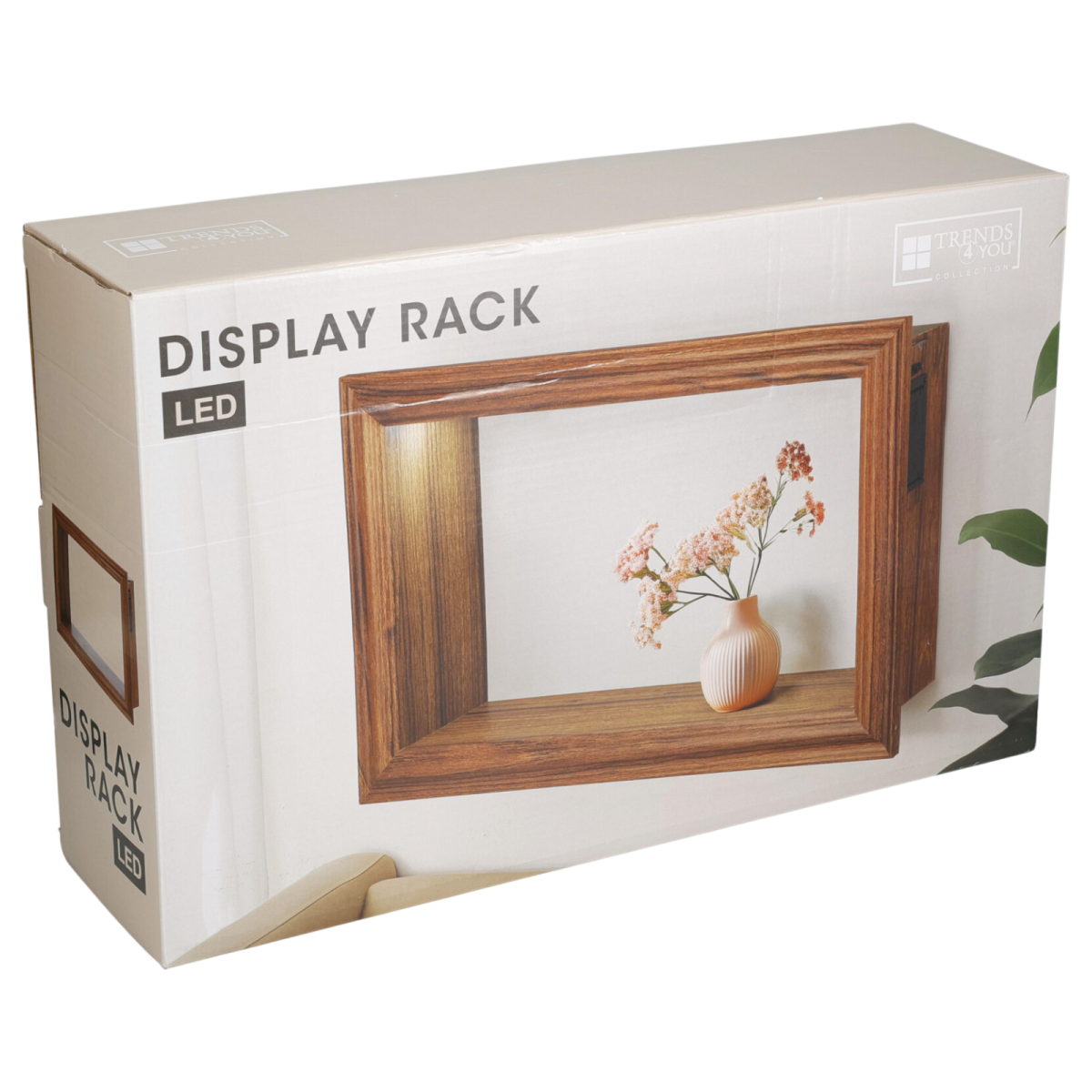 A polc elemmel működő (2 db AAA elem, nem tartozék) világítási funkcióval rendelkezik, amely hangulatos kiegészítő fényt biztosít a rajta elhelyezett tárgyak kiemelésére.