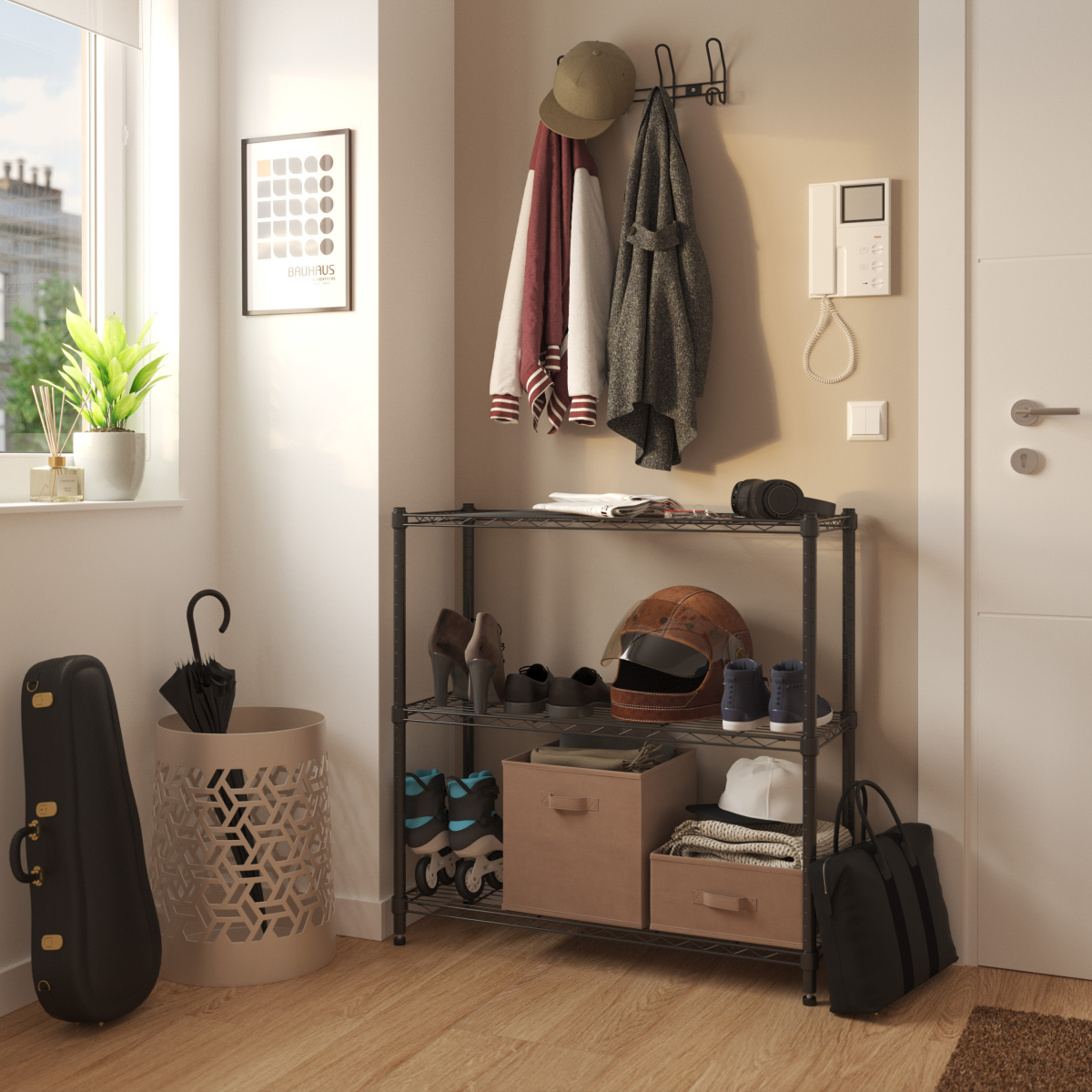 🏠 Nappaliban, dolgozószobában, kamrában vagy gardróbban (száraz helyiségben)