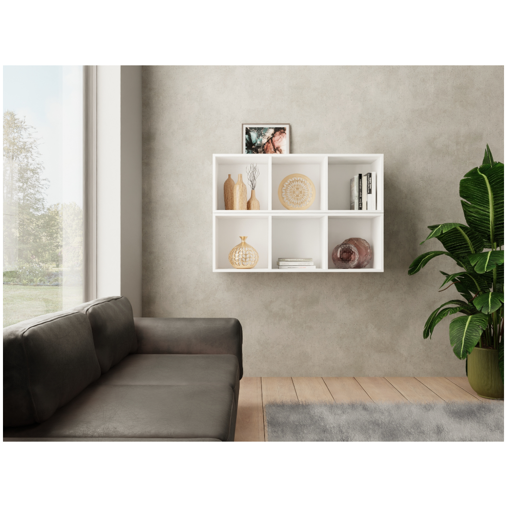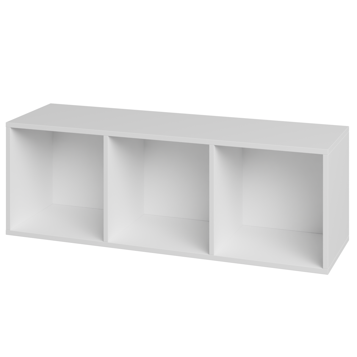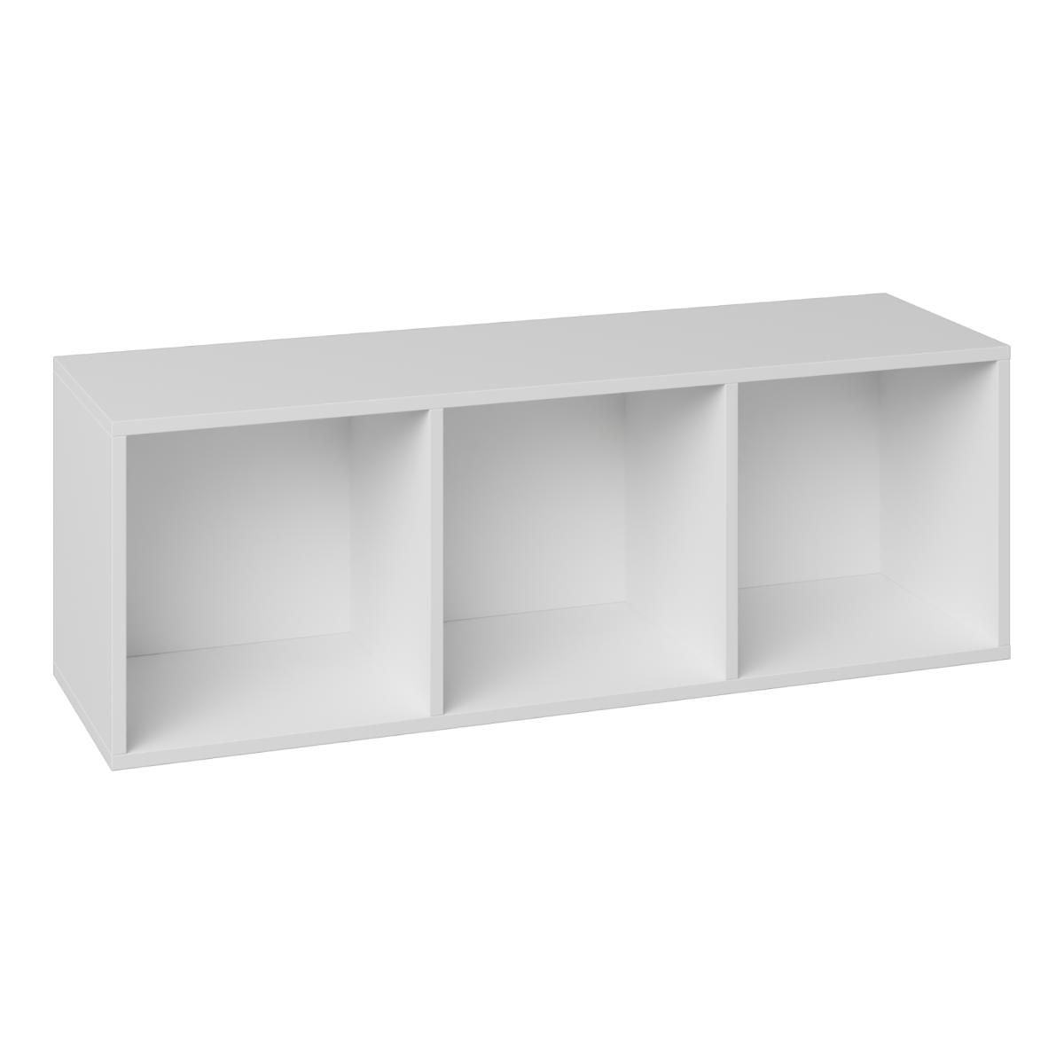 A három nyitott fakk jól átlátható tárolást ad, a fehér felület pedig könnyen illeszkedik bármely enteriőrbe. Vízszintesen és függőlegesen is elhelyezhető, így ott is működik, ahol a falméret vagy a nyílászárók miatt trükközni kell.