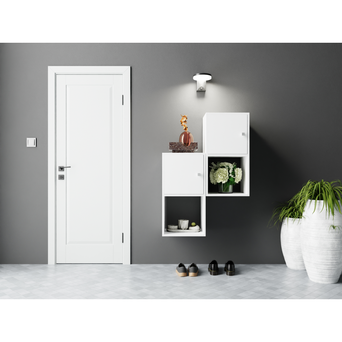 A letisztult fehér kivitel modern, rendezett összképet ad, miközben a méret jól illeszkedik kisebb falszakaszokra is. Fali és álló használatra egyaránt alkalmas, a Vigo családdal további tagjaival pedig könnyen moduláris rendszerré bővíthető. Az előlap balra vagy jobbra nyílóan is felszerelhető.