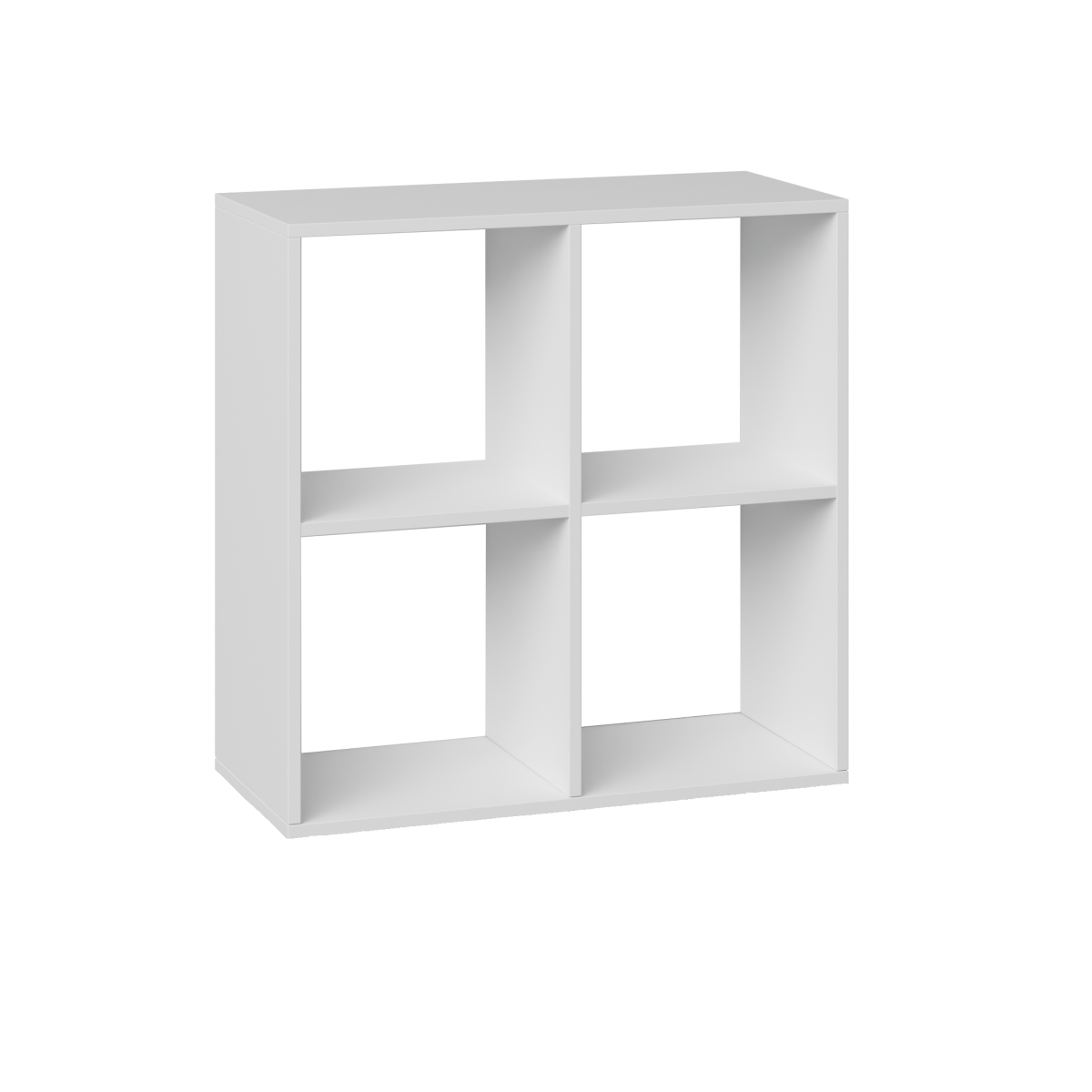 A négy, egyforma rekesz segít rendszerezni a könyveket, dekorációkat vagy tárolódobozokat, miközben a kompozíció egységes marad.