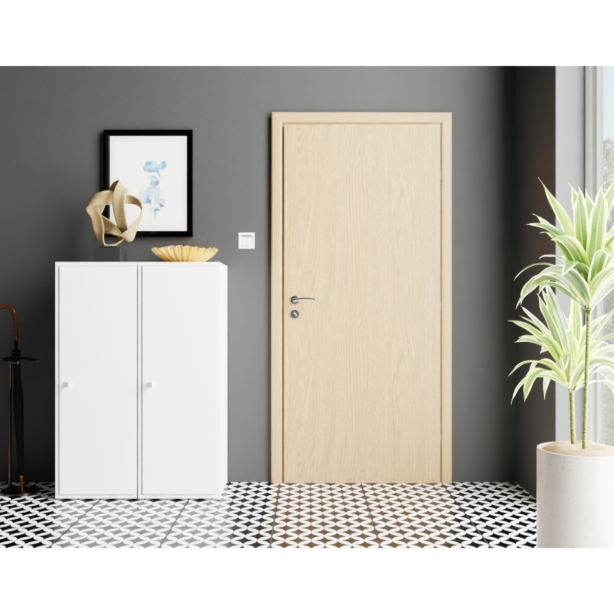 Az ajtó mögötti három rekesz rendezetten tartja a mindennapi dolgokat, miközben a front elrejti a tartalmat, így a tér mindig rendezett marad. A fehér felület könnyen illeszkedik bármely enteriőrbe, és vizuálisan könnyíti a helyiséget.