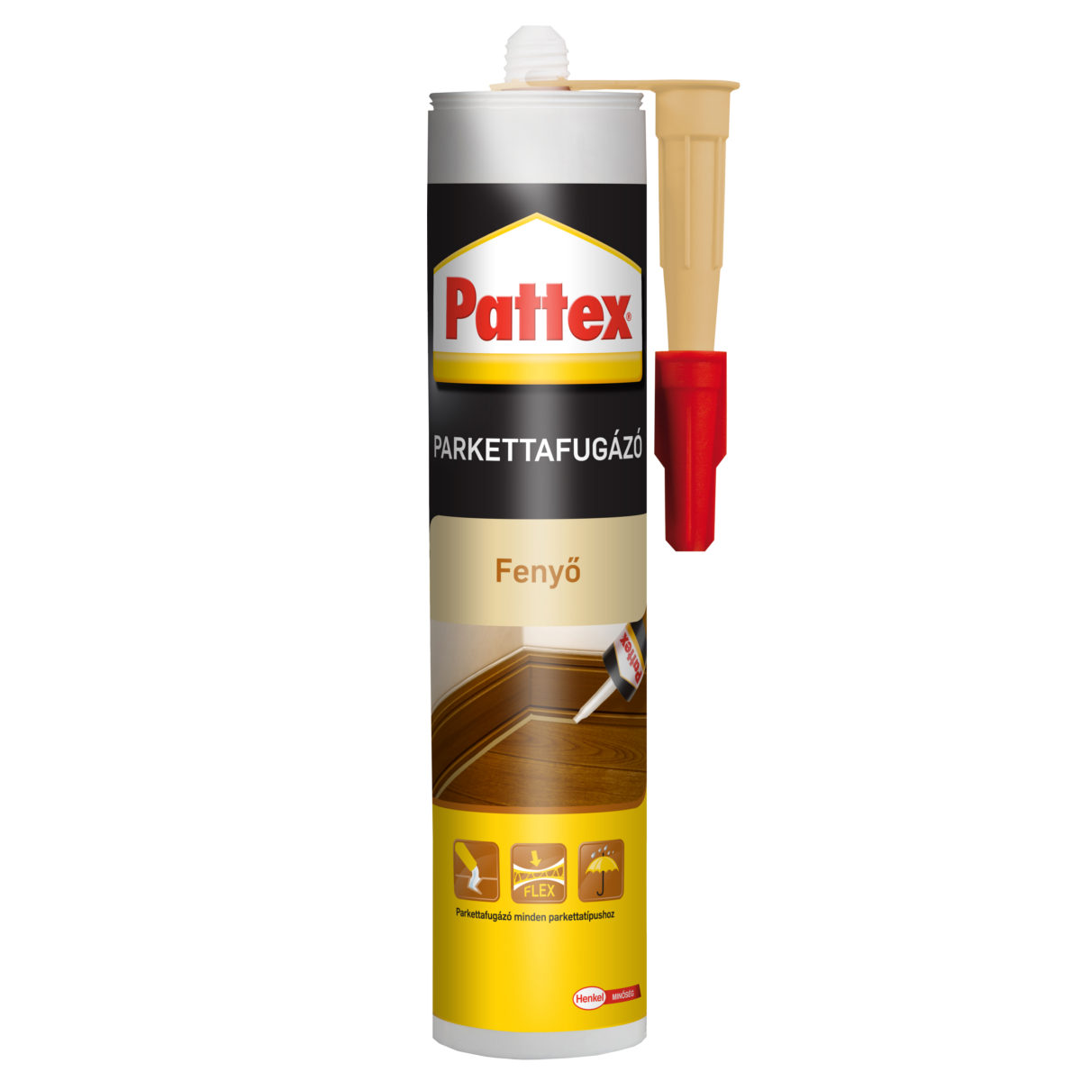A Pattex Parkettafugázó megakadályozza, hogy víz, szennyeződés, ill. kártevők jussanak a parketta alá, a résekbe és szegélyekbe. Felületkezelés előtt és után egyaránt lehet használni a fal és a parketta közötti rés kitöltésére, valamint parketta javítására is kiváló. Oldószer- és szilikonmentes, rugalmas tömítőanyag parkettához és laminált padlóhoz. Csiszolható, lakkozható.