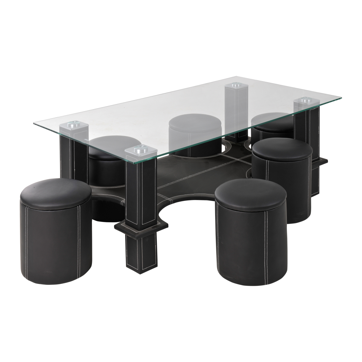 Samira ganritúra, fekete színű, 1 üvegasztallap 6 puffal. Mérete: 130x70x50cm.