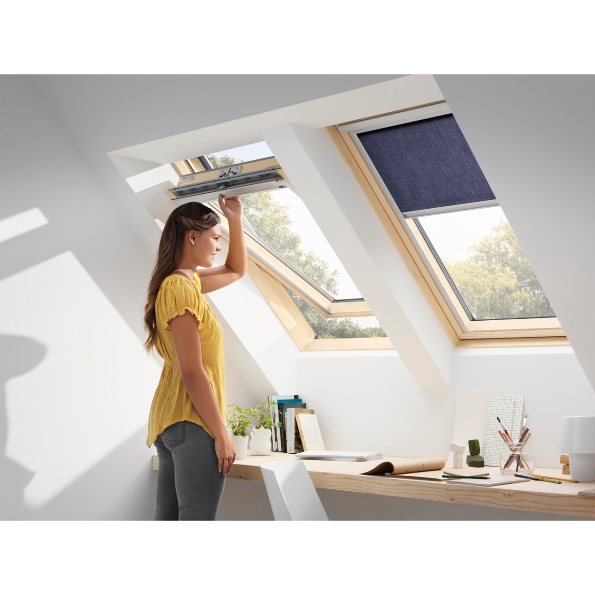 Velux tetőtéri ablak, edzett üveggel, felső kilinccsel, két rétegben készre lakkozott fafelület. Mérete: 55x78cm. A felső kilincses Velux tetőtéri ablak két fő előnye van: a tetőablak egyszerűen kezelhető még akkor is, ha közvetlenül alatta bútorok találhatók, az ablak alacsonyabbra építhető a tetőbe, így Ön állva és ülve is élvezheti a kilátást. Ez a felső kilincses tetőablak, nappaliba, gyerekszobába, hálószobába és dolgozószobába a legalkalmasabb. Mivel a tetőtéri ablakok több fényt engednek be, mint a homlokzati ablakok, világosabb és tágasabb érzést nyújtanak otthonában.