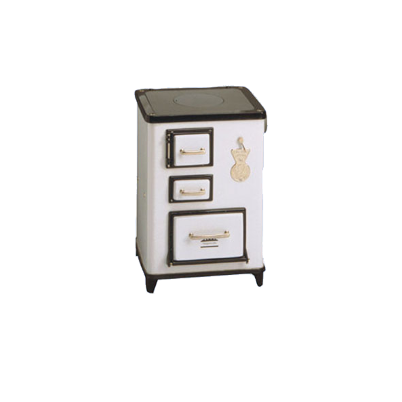 Tea zománcozott burkolatú tűzhely, vasöntvény fedlappal, oldalsó (jobbos) füstkivezetéssel. Mérete 720x510x480 mm, a sütő 245x390x150 mm-es. - Fűthető légtér: max. 120 m3 - Tető nélkül!