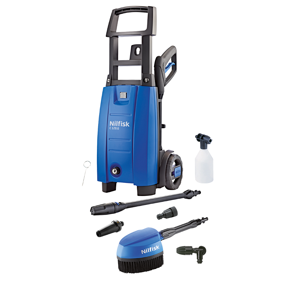 Ez a gép számos olyan funkcióval rendelkezik, amely lefedi az alapvető tisztítási igényeket. Nagy segítség a ház körül és a kertben egyaránt. A kompakt méretű magasnyomású mosó kerekével és fogantyújával könnyedén hordozható. Megbízható alumínium szivattyú. Click&Clean fúvóka rendszer biztosítja a gyors és könnyű fúvóka cserét. Automata start/stop. Egyszerű kezelés, tárolás. Alaptartozékok: tömlő 6m, mosópisztoly, mosólándzsa, szennymaró fúvóka, Powerspeed fúvóka, vegyszerező-habosító tartály, autómosó kefe, kerék, fogantyú.