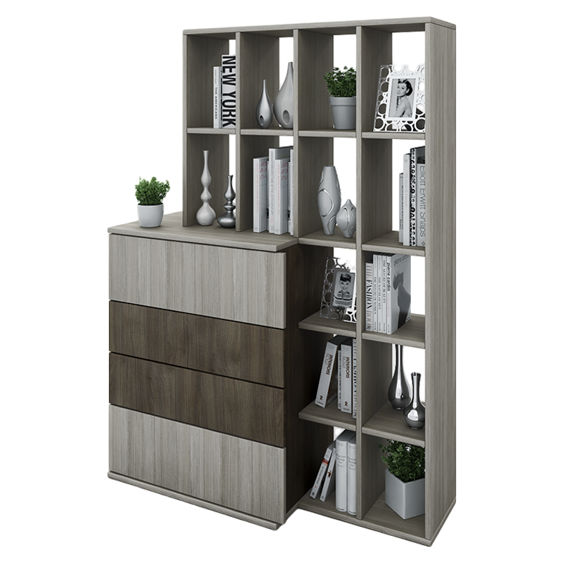 Polis polcos komód, szürke tölgy/kakaó tölgy, 100x136x38cm