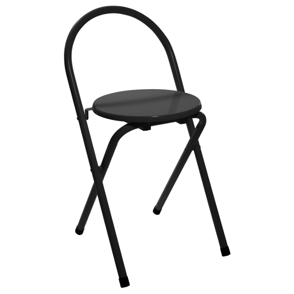 Összecsukható magasfényű fekete szék. Mérete 38x67x33 cm.