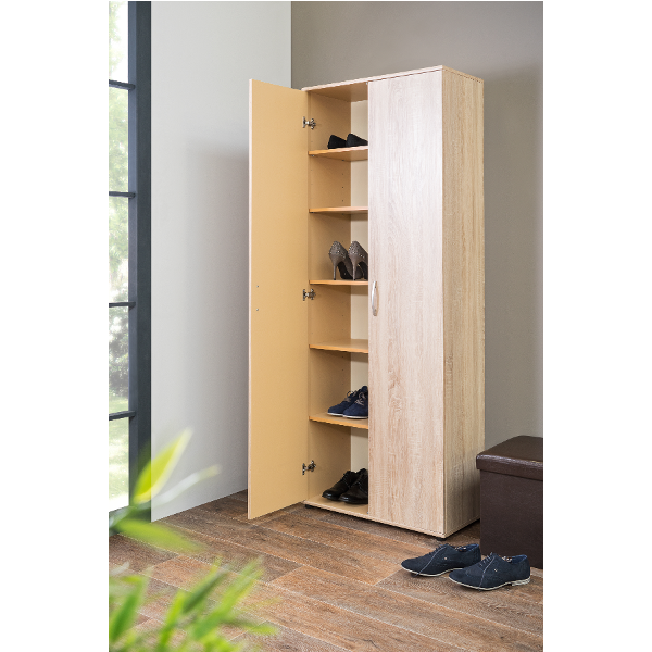 5 polcos cipősszekrény, sonoma tölgy dekor. Mérete 70x187x34 cm.