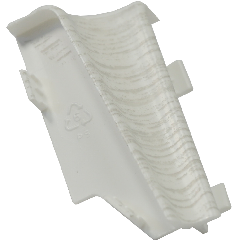 Szegőlécek találkozásánál, toldásánál használatos műanyag kiegészítő elem. Eltakarja a szegélylécek közötti illesztési hézagot, az egyenetlen vágást és védi a szegőlécek szerkezeti integritását; tölgy fehér színben, 2 db / csomag kiszerelésben.
