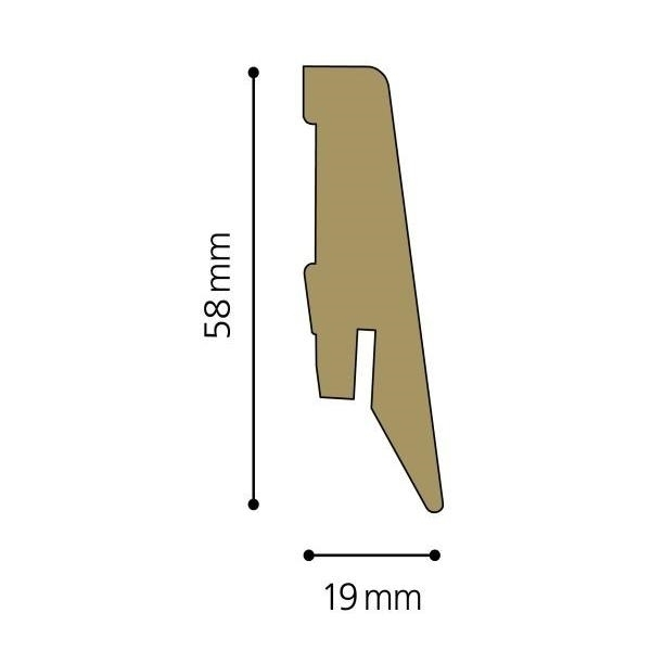 Classen szegélyléc gyártójának 58 mm-es magasságú, MDF anyagú, dekorációs szegélylécprofilja. Leggyakrabban a fal menti dilatációs hézag eltakarására alkalmazzák.