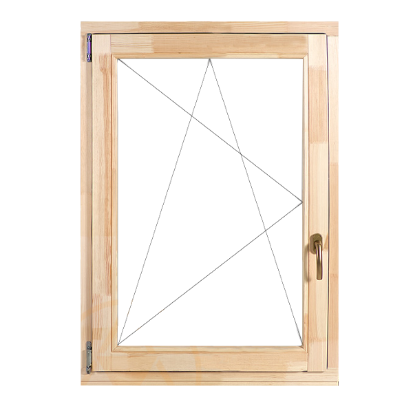 Delta-therm bukó nyíló faablak. Mérete: 90x150cm, balos. Tartozéka: eloxált ablak félkilincs. Szerkezeti vastagság: 68 mm vastag borovi fenyő. Szerkezeti felépítés: 68 mm-es EURO falcos hossztoldott és szélességi toldott rétegragasztott csomómentes BOROVI fenyő. Tömítés: szárnyban körbefutó EPDM alapanyagú zártcellás gumitömítés. Vasalat: GU bronz eloxált vízvető. Üvegezés: 4-16-4 Low-e +Argon Ug=1,1 W/m2K hőszigetelt üveggel. Felületkezelés: nincs.
