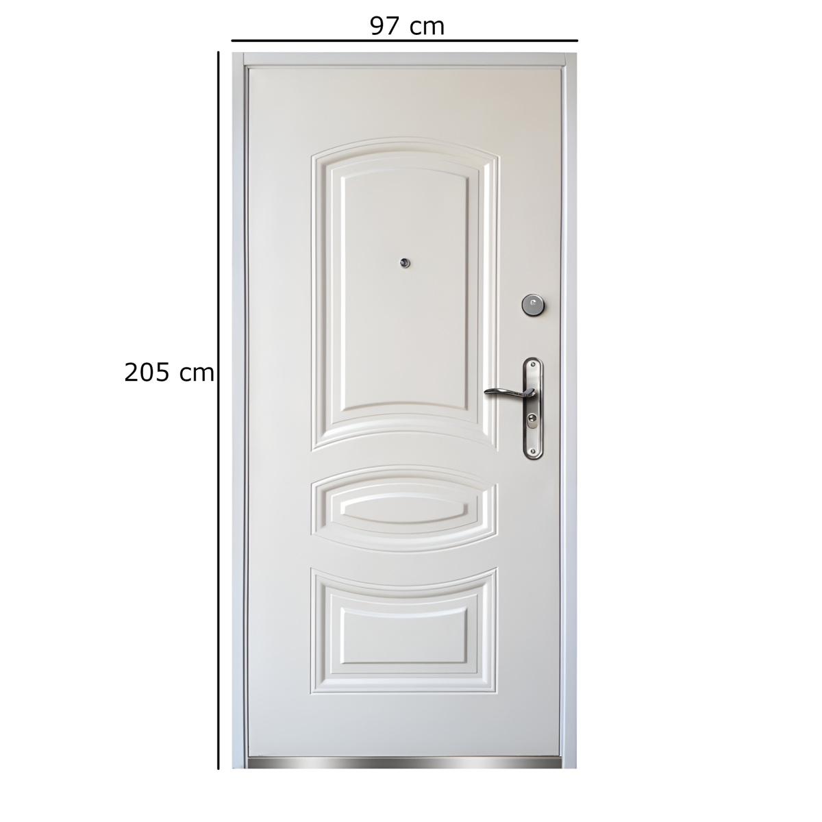 A 97 cm x 205 cm-es méret beépítési méretként értendő, az ajtó szárnyvastagsága pedig 50 mm. A beépített kitekintő és a többpontos zárás biztonságosabb használatot nyújt, míg a rozsdamentes küszöb a mindennapi igénybevétel mellett is tartósabb megoldás.