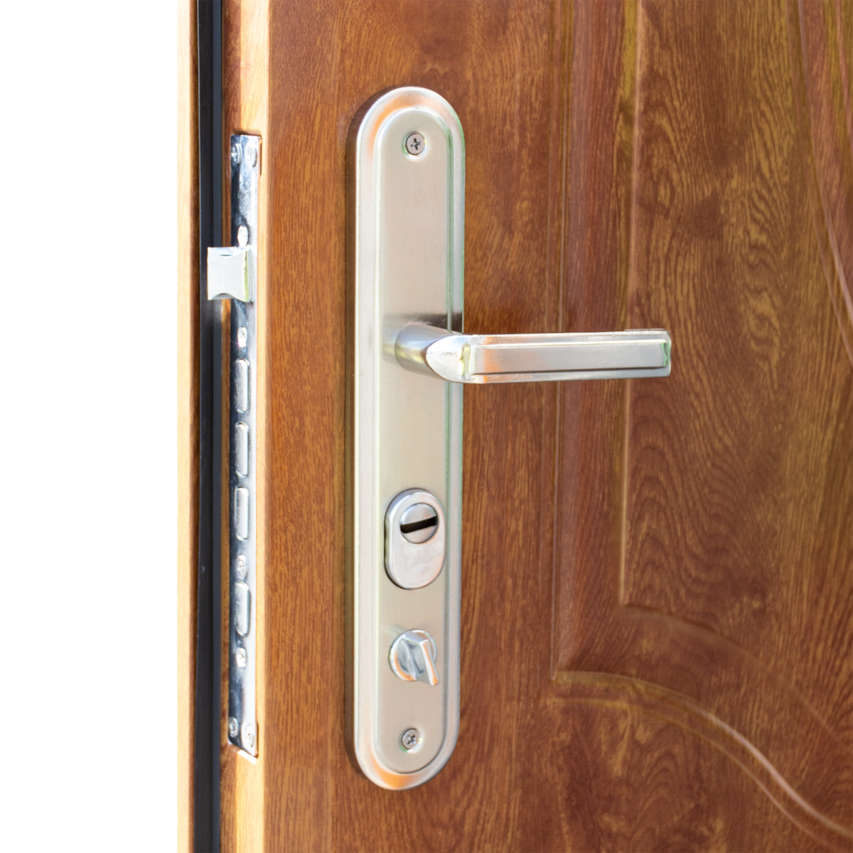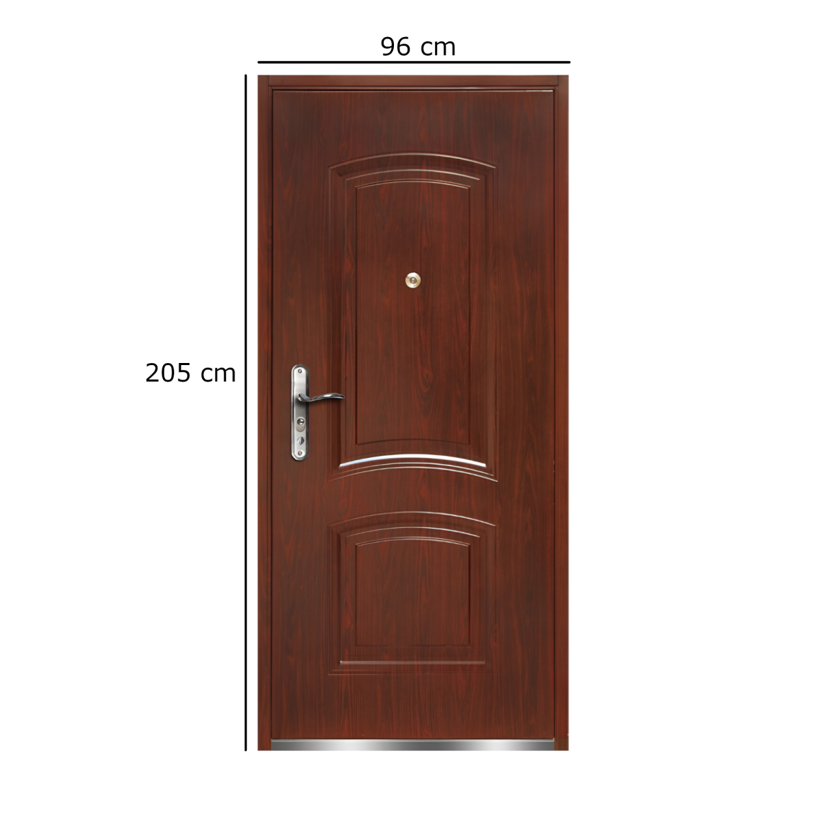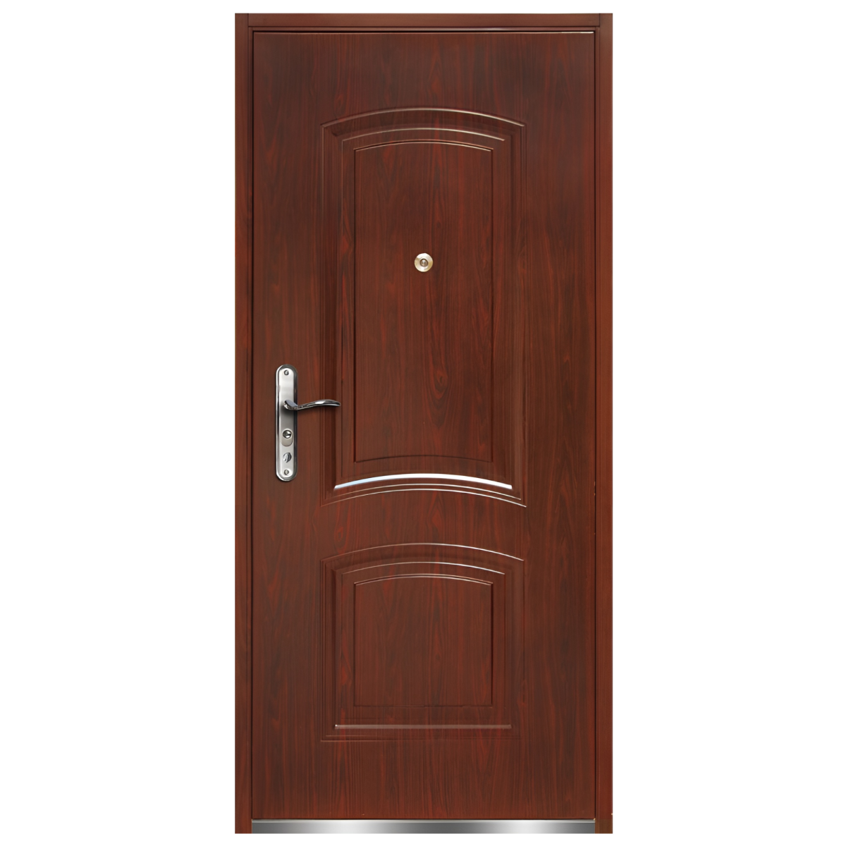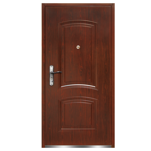 Ez a mahagóni színű, acélból készült bejárati ajtó ideális választás lépcsőházi használatra.