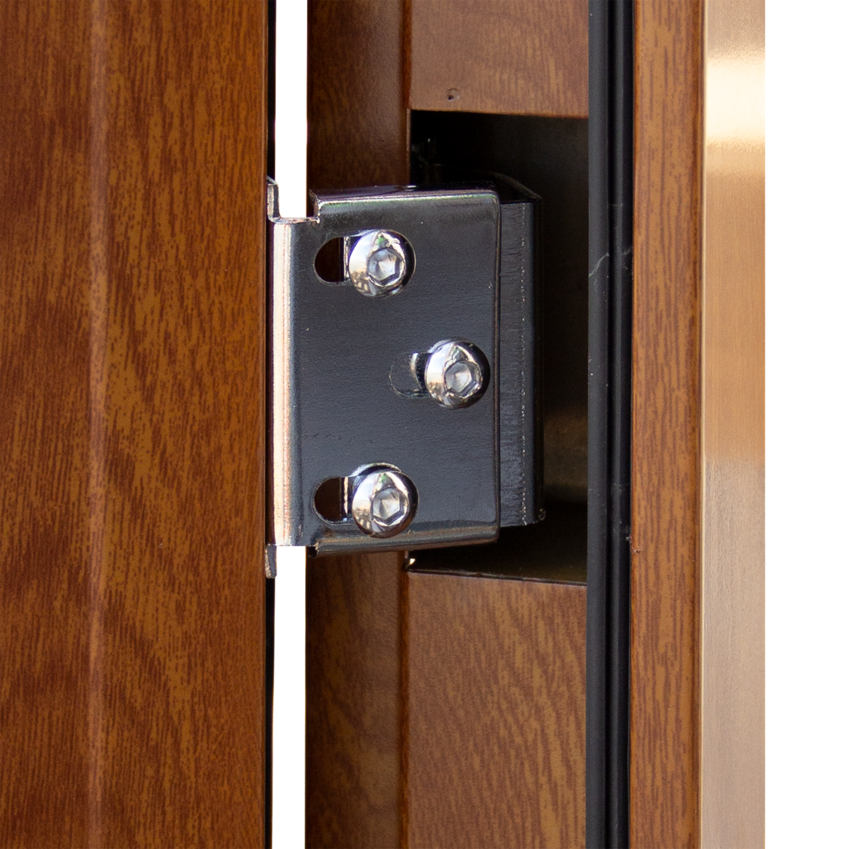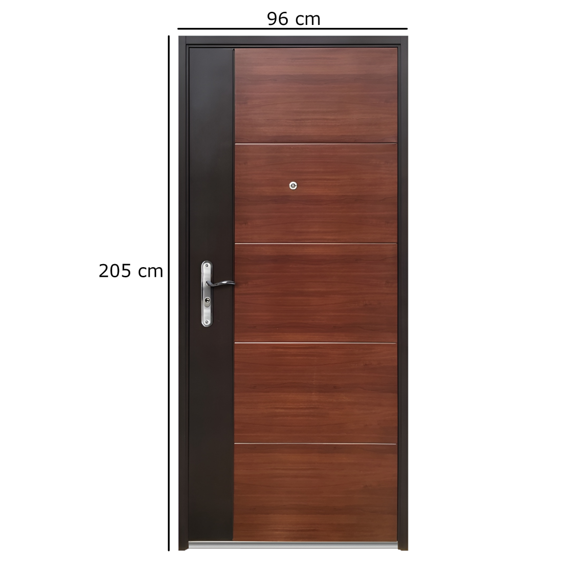 A 96 cm x 205 cm-es méret a beépítési méretre vonatkozik, az ajtószárny vastagsága pedig 50 mm. A méhsejt szerkezetű papír szigetelés könnyebb kialakítást tesz lehetővé, a beépített kitekintő pedig praktikus használatot biztosít.