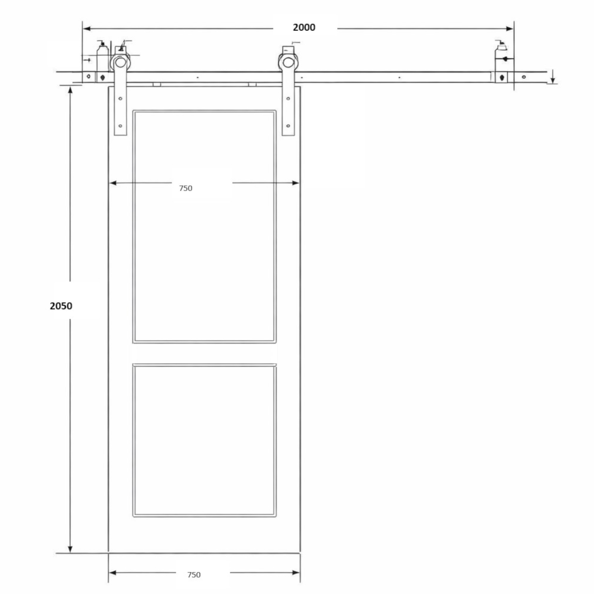 Bence toló ajtó 750x2050mm 2 paneles, lucfenyő, fehér, vasalattal