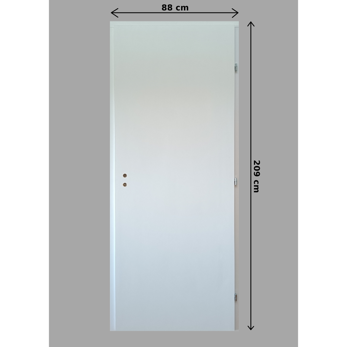 Ez a beltéri ajtó praktikus választás otthoni vagy irodai helyiségek elválasztására. Tele kivitelének köszönhetően biztosítja a szeparálást, fehér színe pedig letisztult, egyszerű megjelenést nyújt. A falcolt ajtólap papírrács betéttel és HDF borítással készült, ami könnyű, mégis tartósabb szerkezetet ad a mindennapi használathoz.