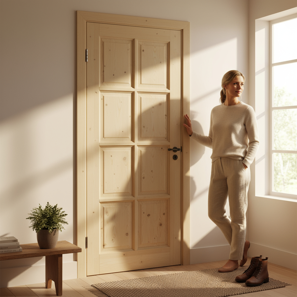 A Delta Rába beltéri ajtó klasszikus, 8 kazettás kivitelével elegáns megjelenést kölcsönöz otthonodnak, miközben a Rába fenyő anyag természetes melegséget visz a belső terekbe. A gerébtokos szerkezet biztosítja az ajtó pontos illeszkedését és stabil működését, így hosszú távon is megbízható megoldást nyújt.