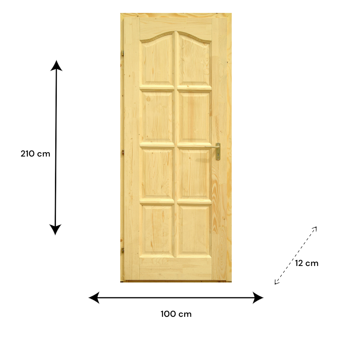 A 100×210 cm-es méretű ajtó balra nyíló kivitelben készül, vagyis ha szemben állsz vele és az ajtó feléd nyílik, a pántok (zsanérok) a bal oldalon találhatók. Az ajtó ELZETT bevéső zárral, zárbetéttel és kulccsal felszerelt, de kilincs nélkül kerül értékesítésre, így szabadon választhatsz hozzá a térhez illő kilincset.