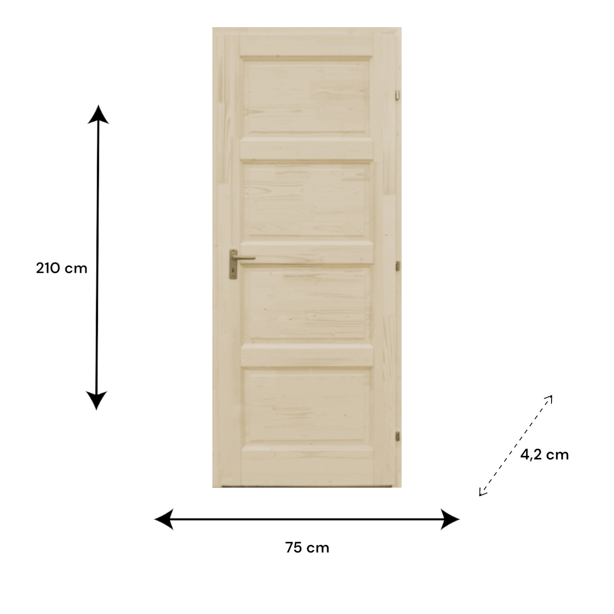 ✅ Anyag: 42 mm vastag, hossztoldott, táblásított lucfenyő ajtólap