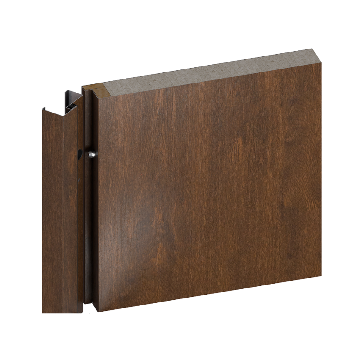 A préselt acéllemezből készült, 55 mm vastag ajtószárny masszívabb szerkezetet biztosít, míg az expandált polisztirol szigetelés hozzájárul a jobb hő- és hangszigeteléshez. A felület UV-álló PVC dekorfóliával bevont, így hosszabb ideig megőrzi esztétikus megjelenését kültéri használat mellett is.