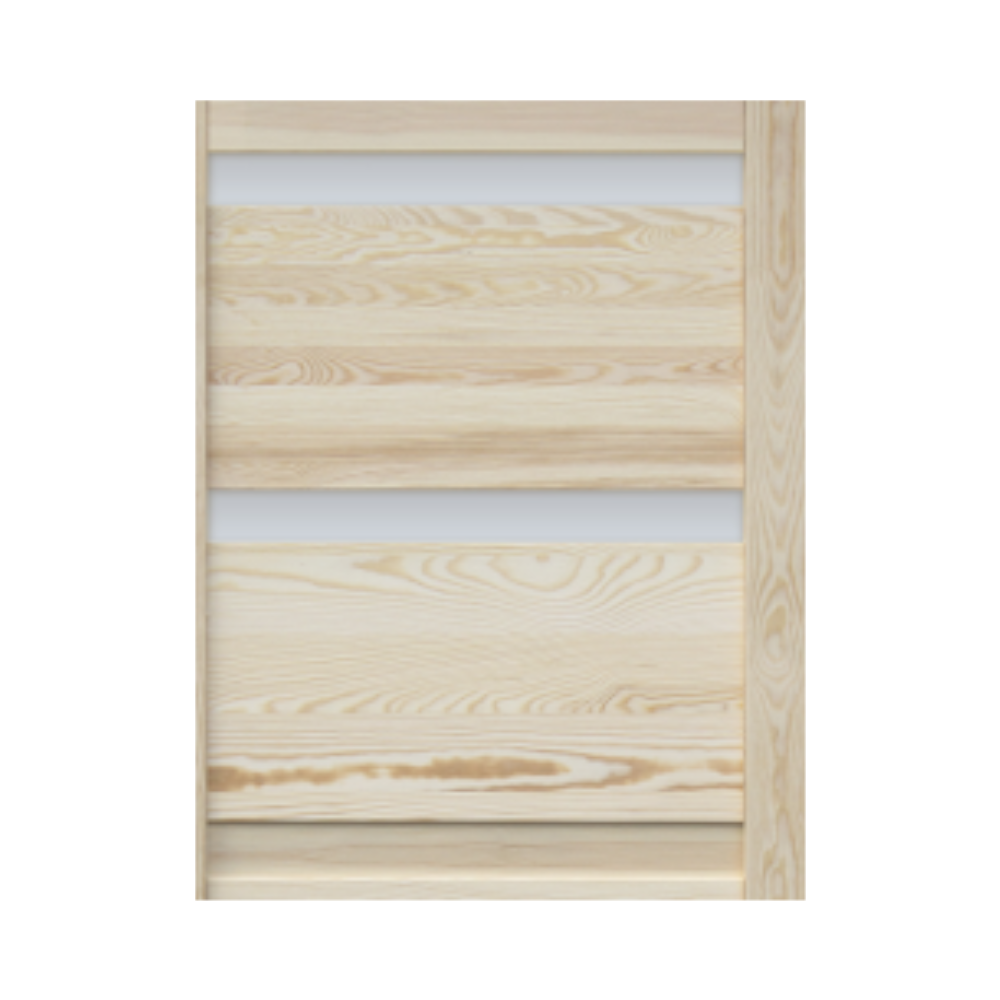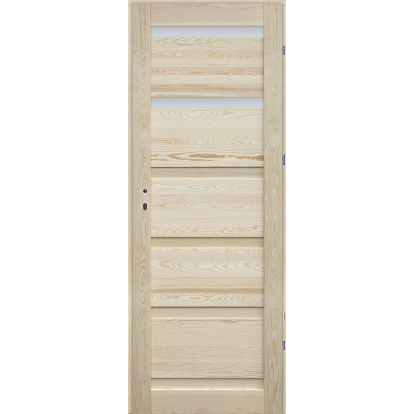 Genewa 100×210 cm jobbra nyíló gerébtokos 2 üveges beltéri ajtó – természetes fenyőből, világosabb belső terekhez