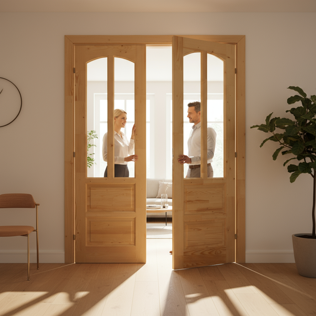 🏡 Családi házakban és lakásokban – természetes faajtóként meleg, elegáns megjelenéshez